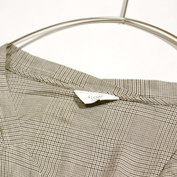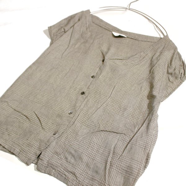 美品 SLOBE IENA スローブ イエナ 可愛いグレンチェック柄 フレンチスリーブ デザインシャツ F 春 夏 25C06