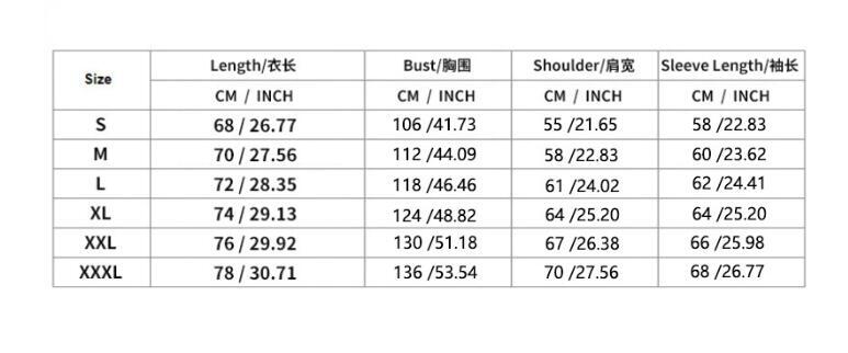 3XL:着丈78cm,バスト136cm,肩幅70cm,ズボン丈112cm,ヒップ122cm,ウエスト92cm