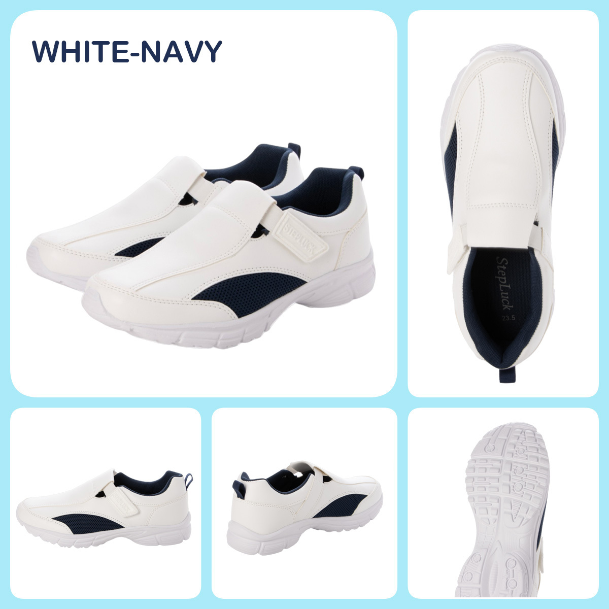 ワーキングシューズ ルームシューズ ナースシューズ ベルクロ スニーカー スリッポン 看護師 介護士 男女兼用 25542-wht-nav-240