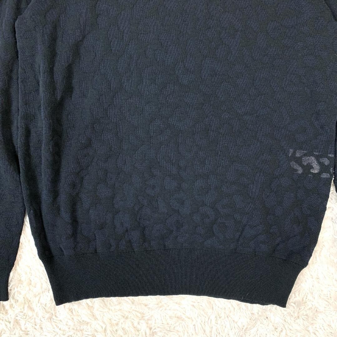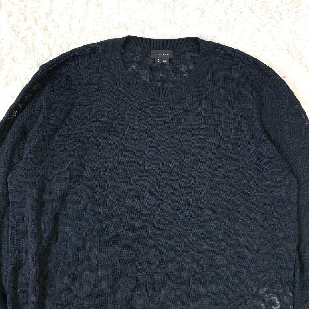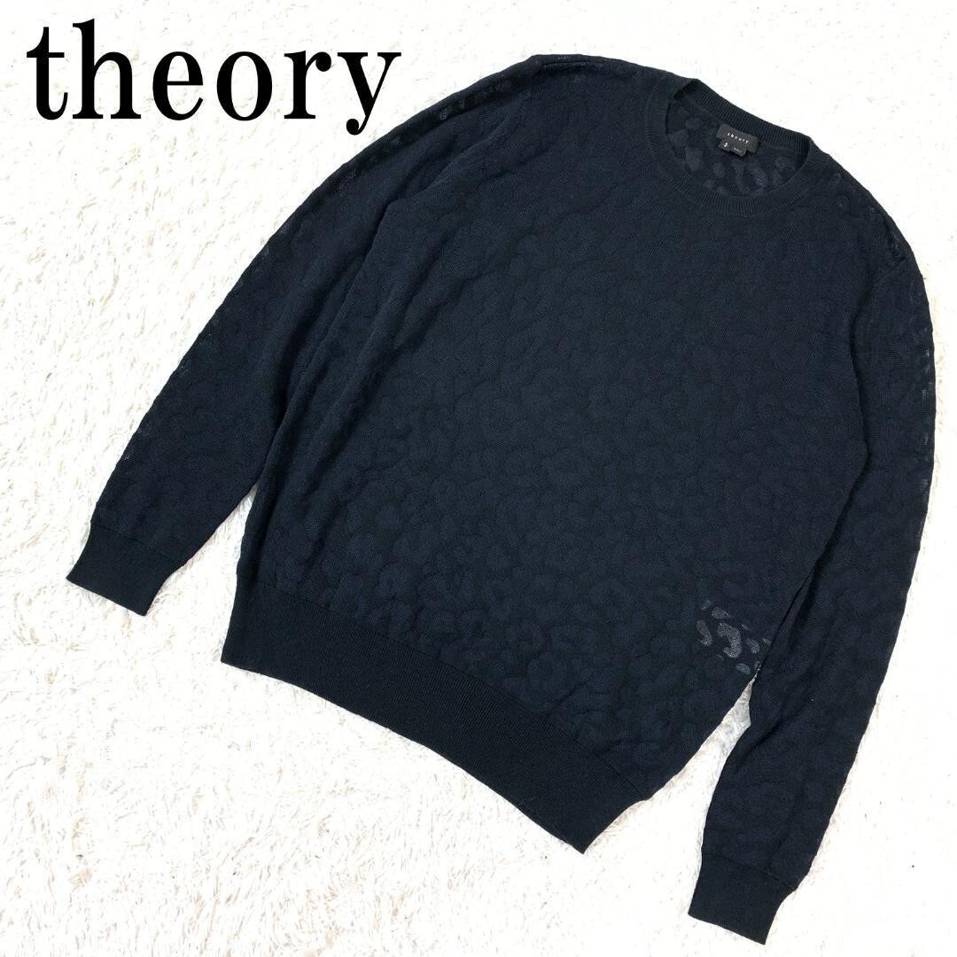 theory セオリー 長袖ニット ネイビー ヒョウ柄 ひょう柄 アニマル柄 総柄 濃紺 紺色 コットン S/P B590
