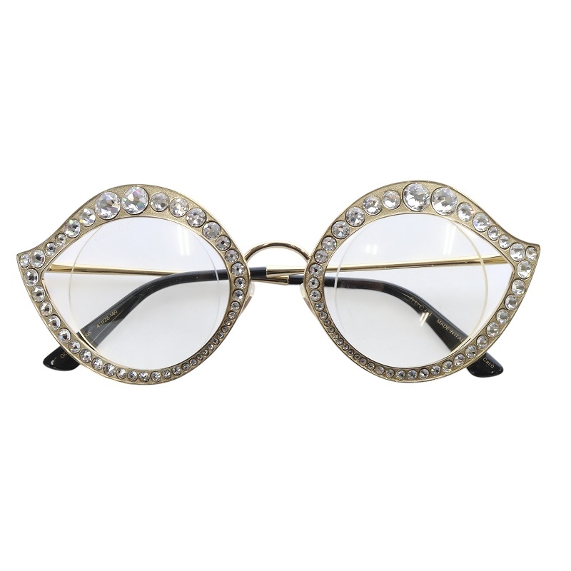 グッチ GUCCI コレクションライン クリスタル めがね 眼鏡 41□28-140 ゴールド色 GG0046S /SR24 ■OH レディース