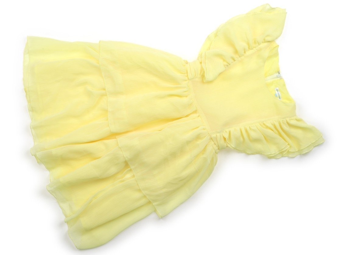 後ろファスナー開き。ポリエステル素材、シフォン調生地。裏地付き。襟元とスカート真ん中付近に薄茶色いシミがありますが、まだまだお使いいただけそうです。