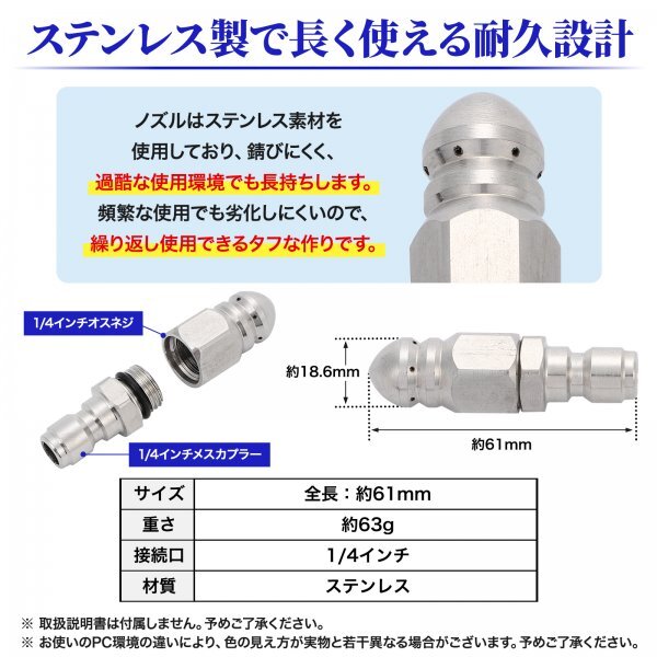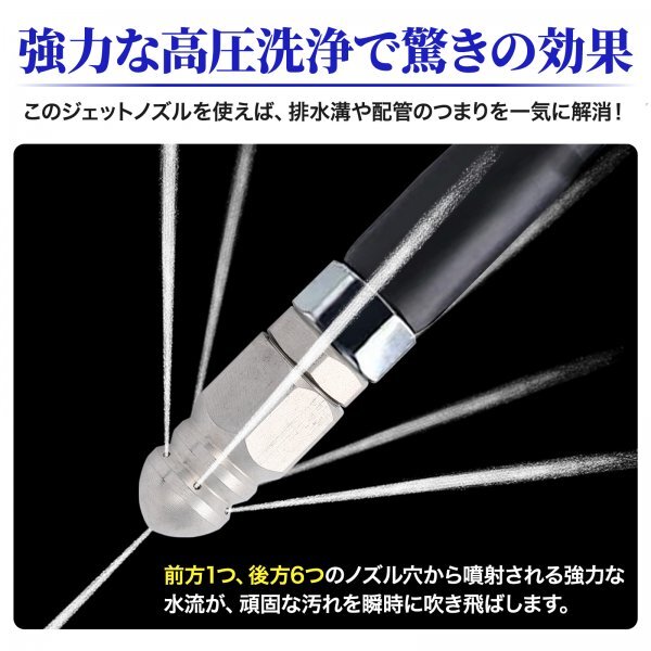 ★【強力な高圧洗浄で驚きの効果】このジェットノズルを使えば、排水溝や配管のつまりを一気に解消!前方1つ、後方6つのノズル穴から噴射される強力な水流が、頑固な汚れを瞬時に吹き飛ばします。