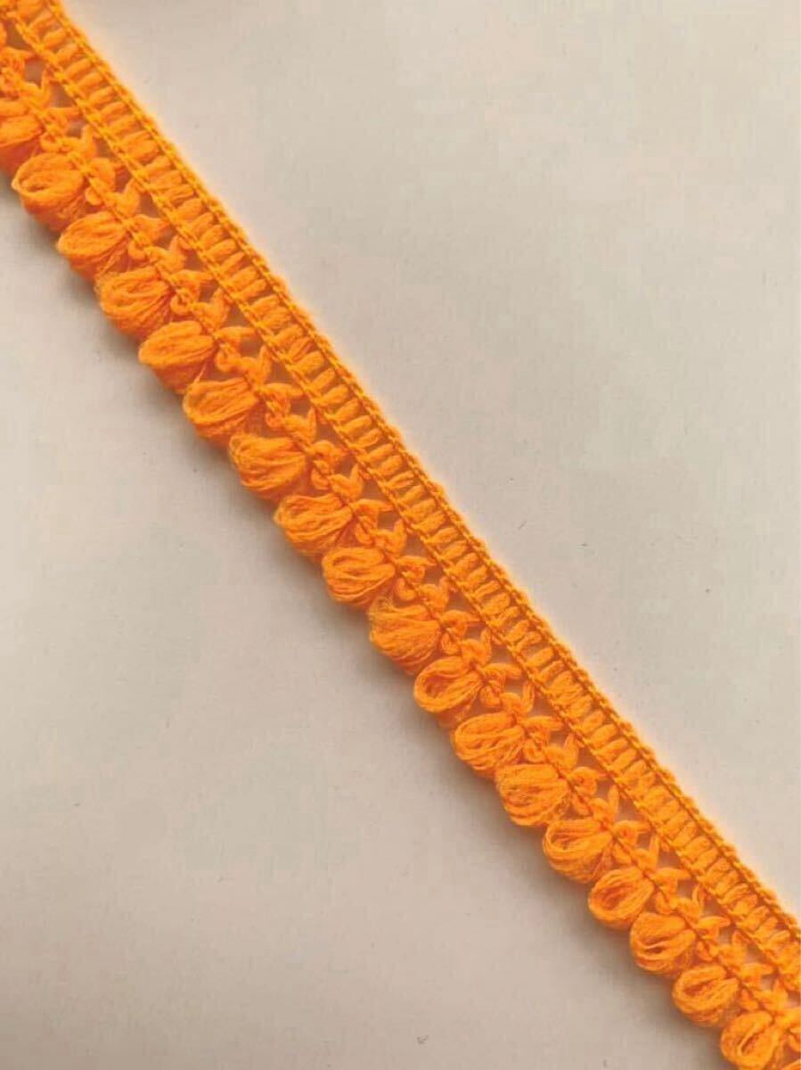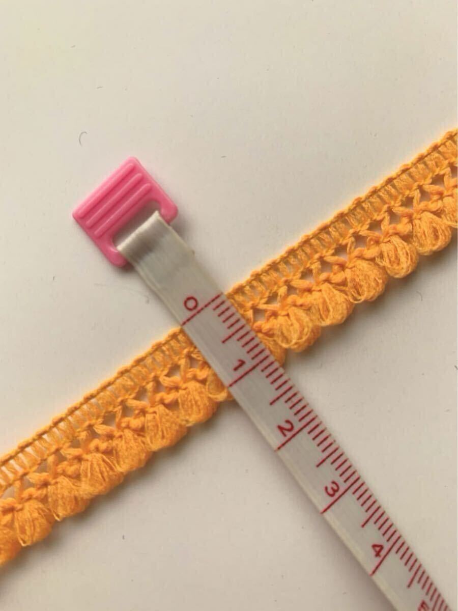 鮮やかなオレンジカラーが目を惹く、幅約1cmポンポンブレードです。