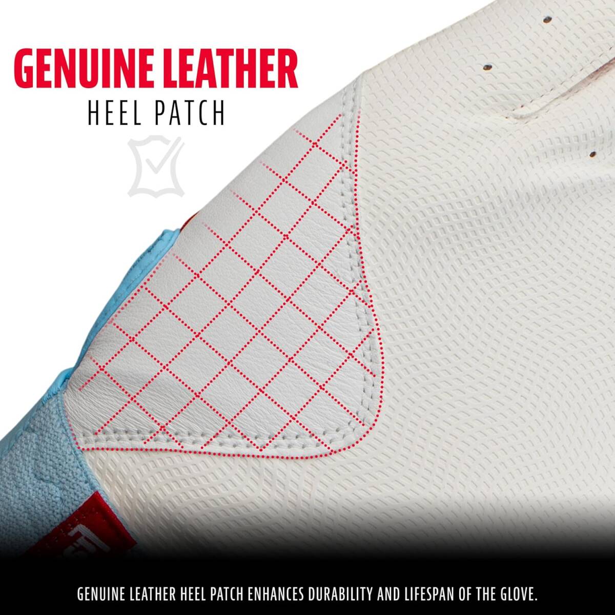 • GENUINE LEATHER HEEL PATCH: Constructed with a genuine leather heel patch to enhance and extend the durability and lifespan of each batting glove
