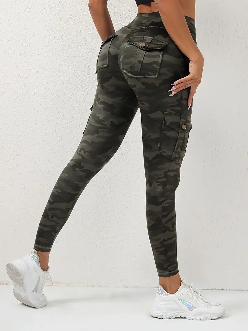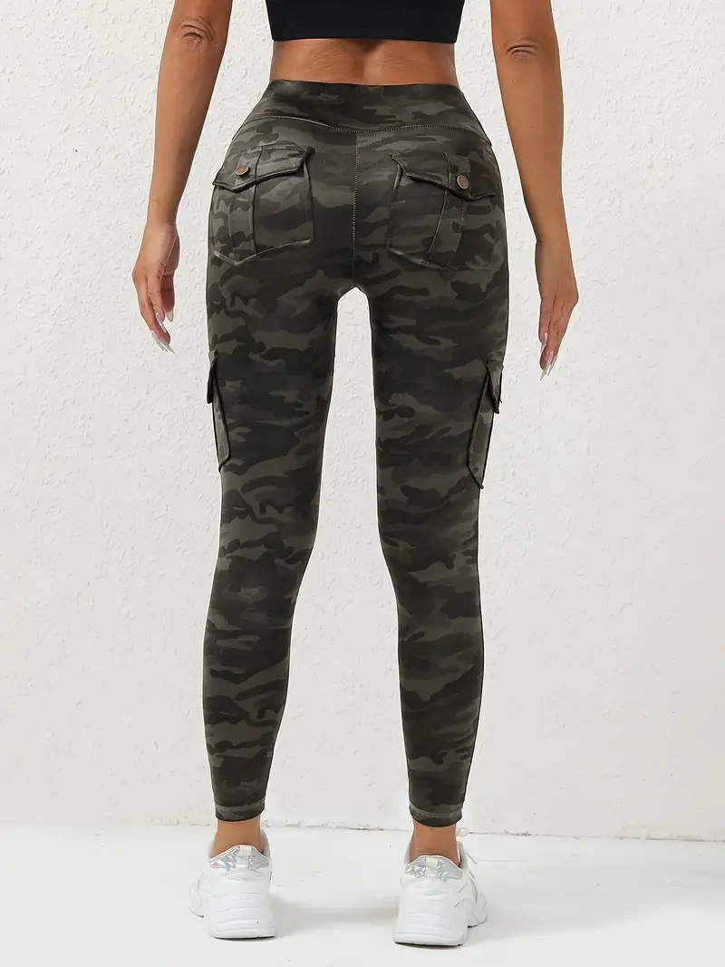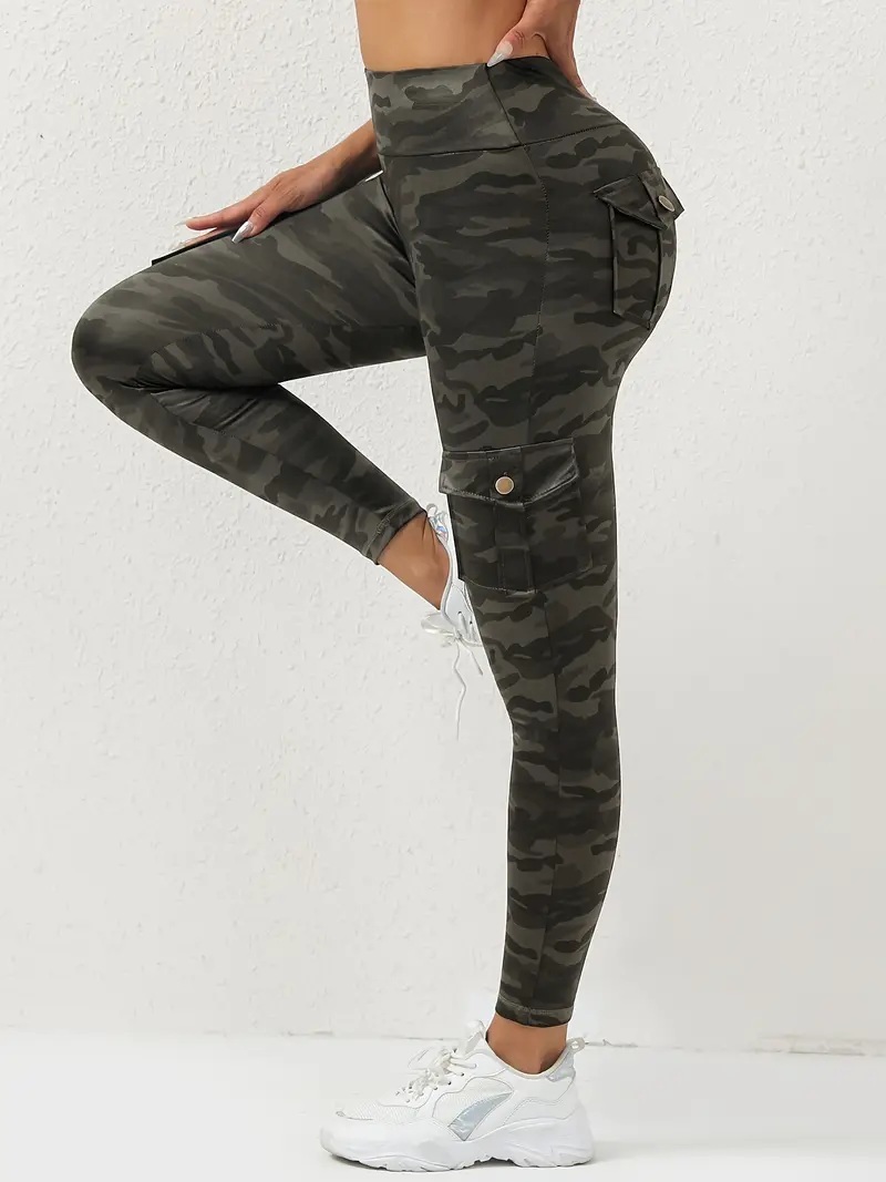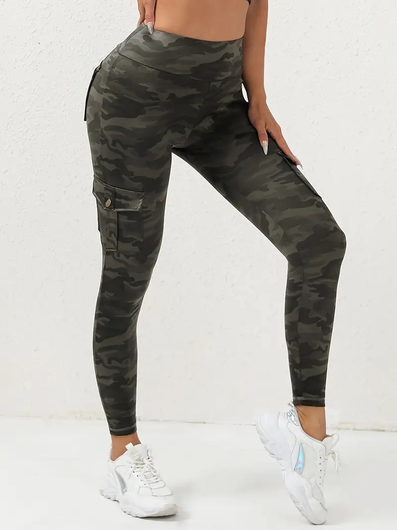 Firmabs style 女性用ハイウエスト グレーカモ ヨガレギンス、ポケット付き - 通気性、吸汗生地、ストレッチ&スリミングフィット