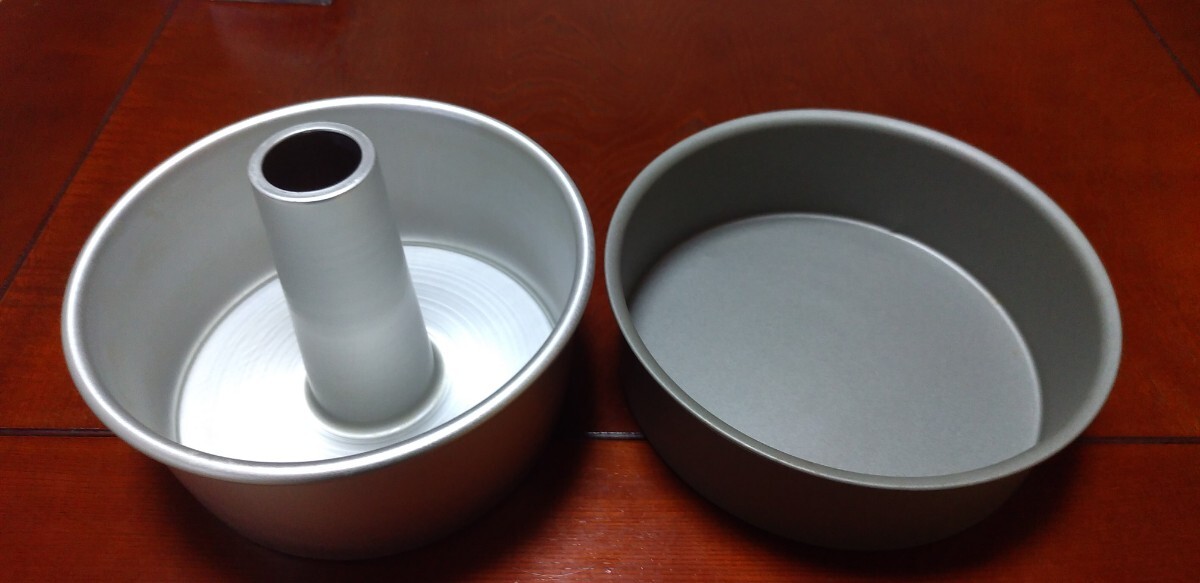 アルミ製シフォンケーキ焼型(17cm)とデコレーションケーキ焼型 シルバーストーン(18cm)のセットです。