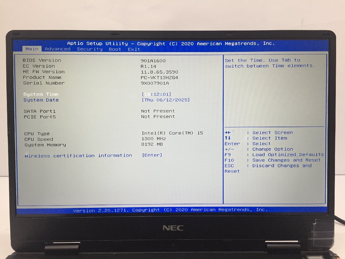 ジャンク/ NEC PC-VKT13HZG4 Intel Core i5-8200Y メモリ8.19GB ストレージ無し 【K16183】
