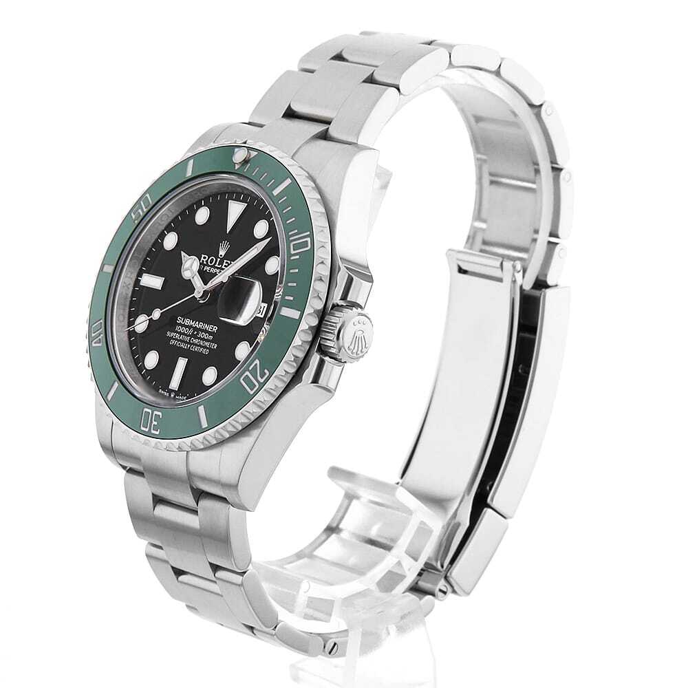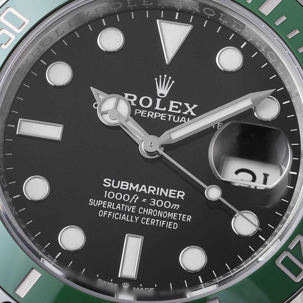 | モデル情報 | 2020年のバーゼルワールドで発表された"サブマリーナ デイト"です。ケースサイズが41mmにサイズアップされ、フラッシュフィットとブレスレットのバランスも調整されました。グリーンベゼルとブラックダイアルの組み合わせは、2003年~2010年に生産されていた16610LVを彷彿する組み合わせです。 ムーブメントにはCal.3235を搭載。香箱の構造が一新されたことによりパワーリザーブが70時間に延長されています。防水性は300mです。 |
