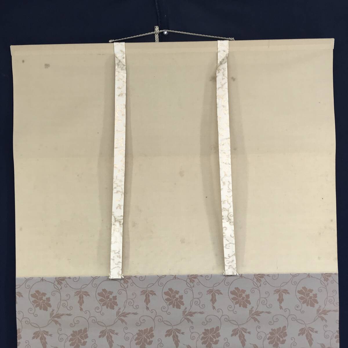 【作品状態】 本紙は紙本肉筆です。本紙は薄汚れ、全体に多数の糊シミ、折れ、巻シワあります。表装は天地に汚れシミ、糊シミあります。