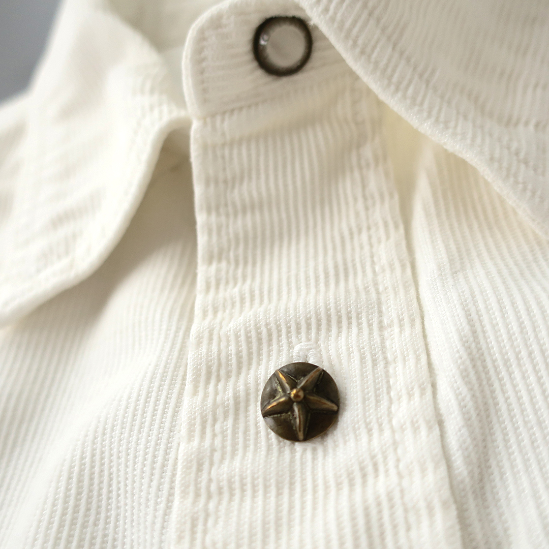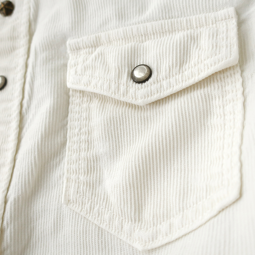 TMT サマーコーデュロイ ウエスタンシャツ BIG HOLIDAYロゴ刺繍 ホワイト(XS) 半袖