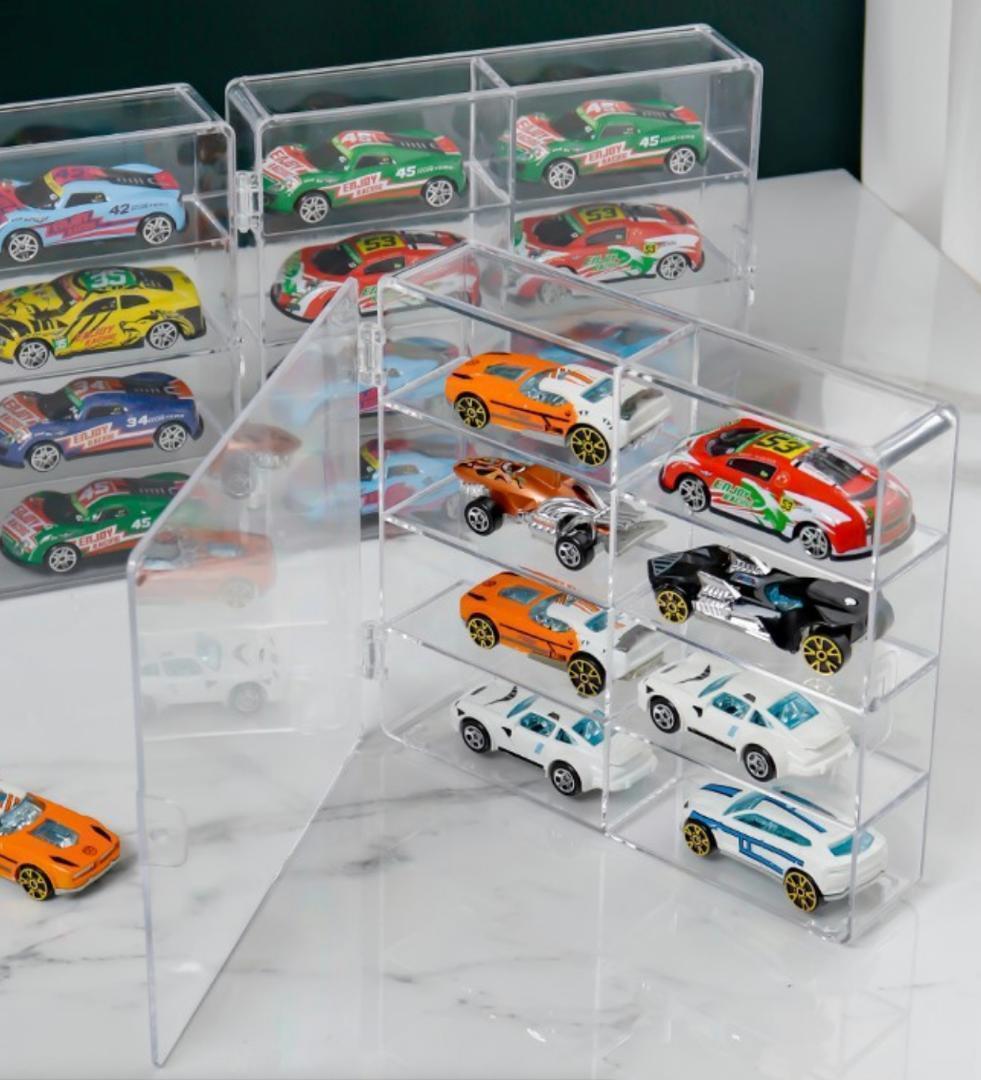 ケースには透明性の高いスチロール樹脂を使用。中に収納したミニカーがクリアに見えるため、ディスプレイとしても楽しめます。硬質な素材で適度な厚みがあり、大切なミニカーをホコリやキズからしっかり守ります。