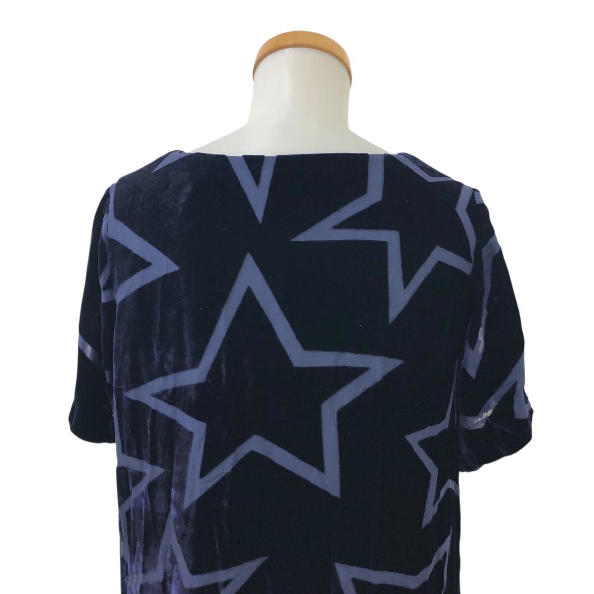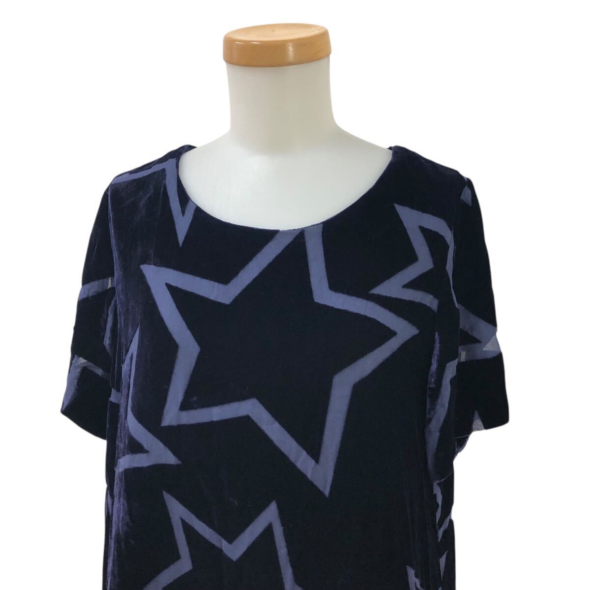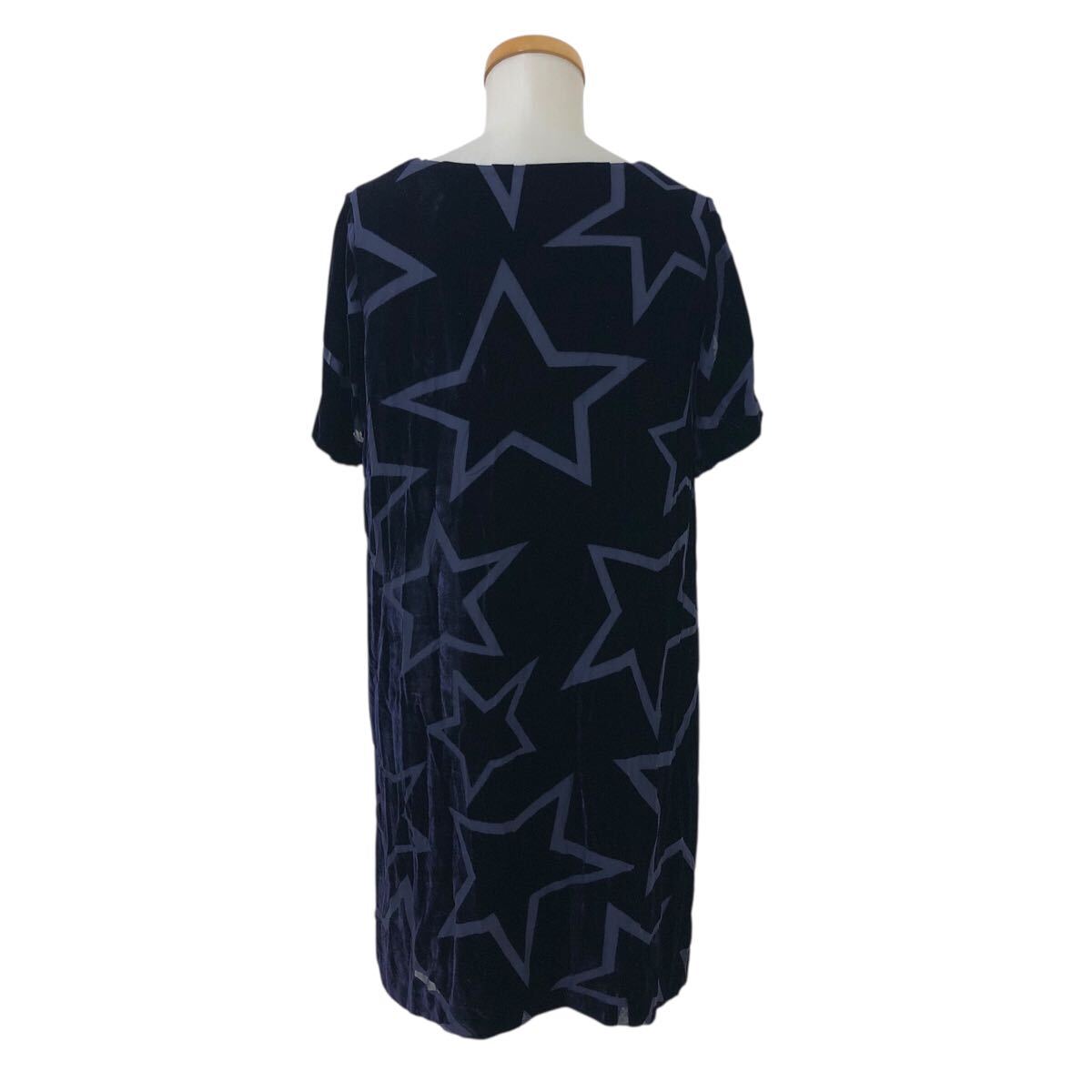Nm310-36 SONIA BY SONIA RYKIEL ソニアリキエル 星 スター 総柄 ベロア 半袖 ワンピース ワンピ ネイビー 紺 レディース 38