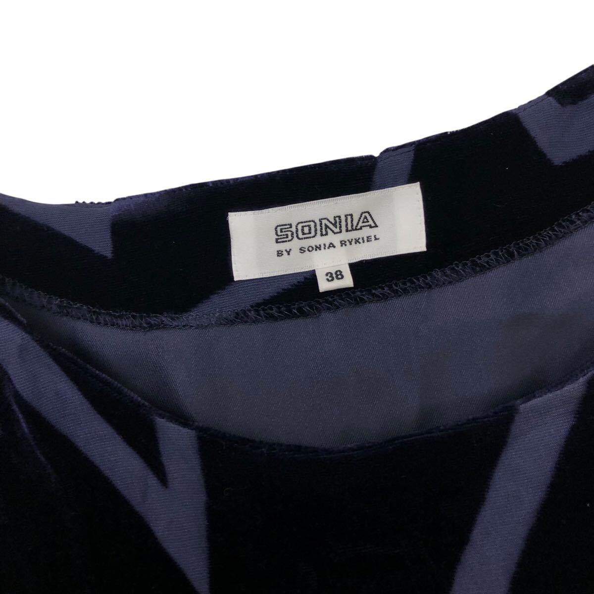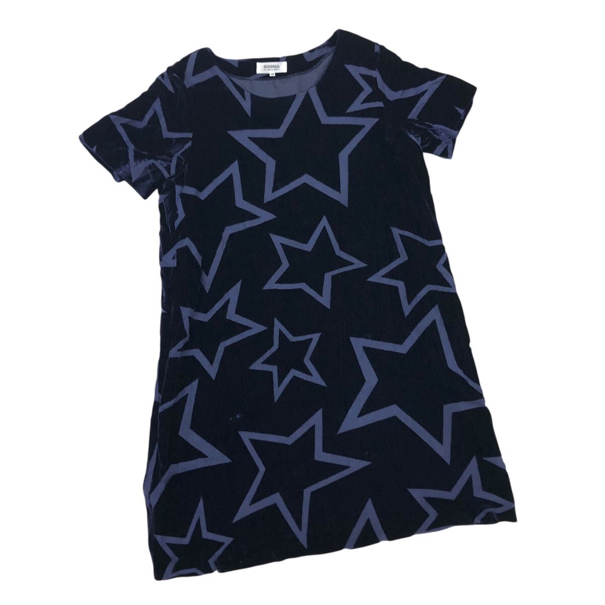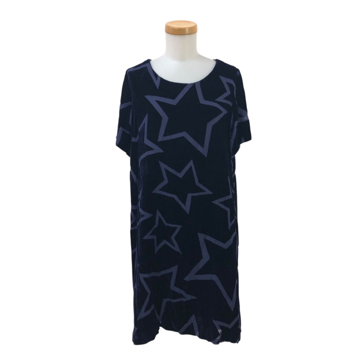 Nm310-36 SONIA BY SONIA RYKIEL ソニアリキエル 星 スター 総柄 ベロア 半袖 ワンピース ワンピ ネイビー 紺 レディース 38