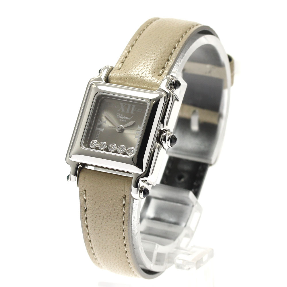ショパール Chopard 27/8892-23 ハッピースポーツ スクエア 5Pダイヤ クォーツ レディース 良品 _893898【ev15】