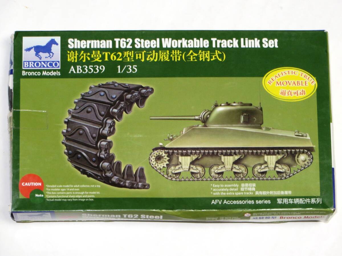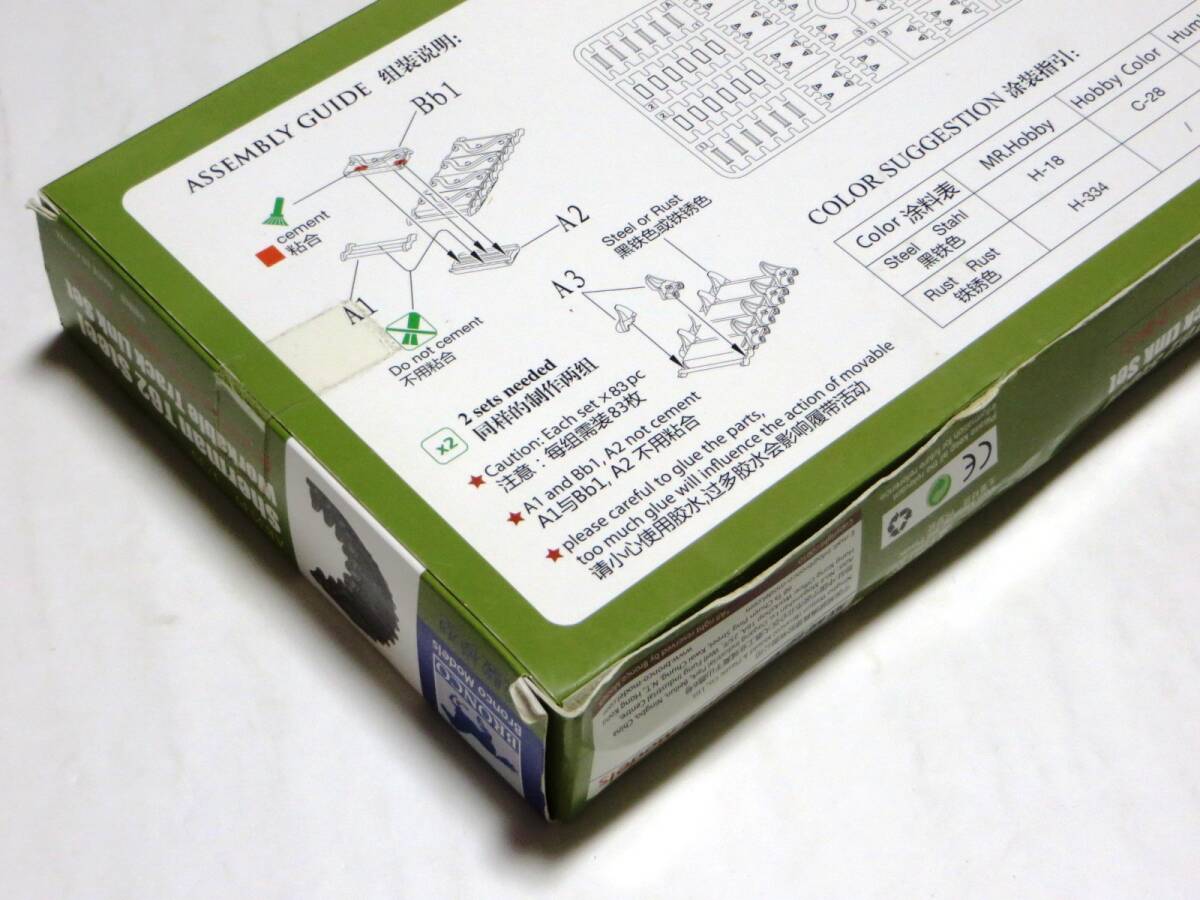 | ・「M4シャーマン」シリーズにおいて使用されていた全金属製の「T62型」履帯を再現 ・履帯パターンは表面に緩やかな山形の突起が付けられ、 山形のラインを挟むように3つのリベットが見えているのが特徴です ・垂直式のバネを装備した「VVSS」懸架装置用の履帯で、「M4シャーマン」シリーズでは 当初ラバータイプの「T51型」履帯が多く使われたため、 この「T62型」履帯は1943年のイタリア戦以降、装着例が多く見られるようになります ・実車写真を見る限り「M4シャーマン」シリーズを供与されたイギリス連邦軍の車両がこのタイプを多く使用しているようです ・各履板は5個のパーツで構成され、その内訳は軸パーツ、2分割式の中央部、サイドのコネクター部2個となっています ・組み立ては、軸パーツに中央部パーツを挟み込むようにして装着、その後両側にコネクター部を接着する方式となり、 可動式とすることが可能です <適応車両> ・ 「M4 シャーマン」 ・ 「M4A1 シャーマン」 ・ 「M4A2 シャーマン」 ・ 「M4A3 シャーマン」 ・ 「M4A4 シャーマン」 ・ 「M7 プリースト」 ・ 「M10 駆逐戦車」 ・ 「M12 キングコング」 ・ 「M36 ジャクソン」 ・ 「セクストン自走砲」 ・ 「アキリーズ対戦車自走砲」 など ・箱にイタミあり |