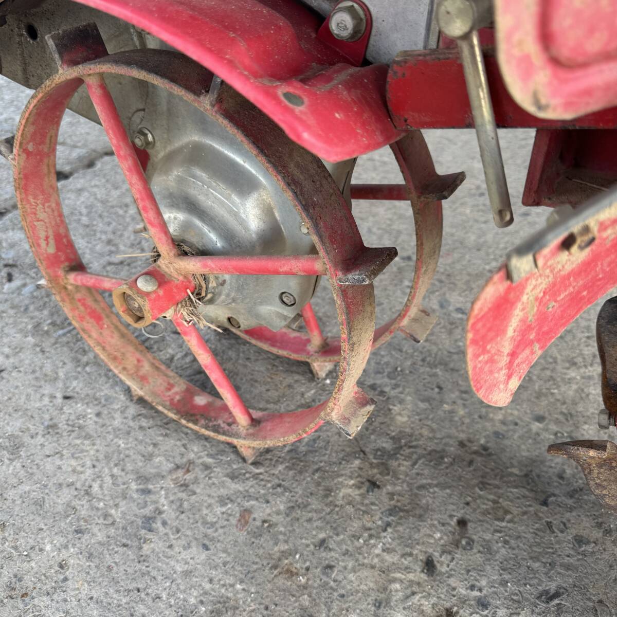 エンジン始動、ロータリー回転は確認済みです。 ロータリーのレバーを押してもワイヤーが弛むだけで動作しません。 手でロータリーのクラッチ部分を入れると回転します。 切る時はレバーでも切れます。 中古品のため傷、汚れ等ございます |