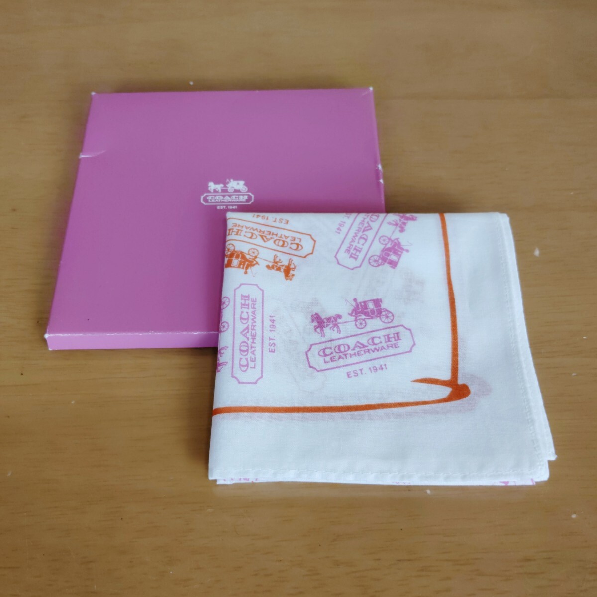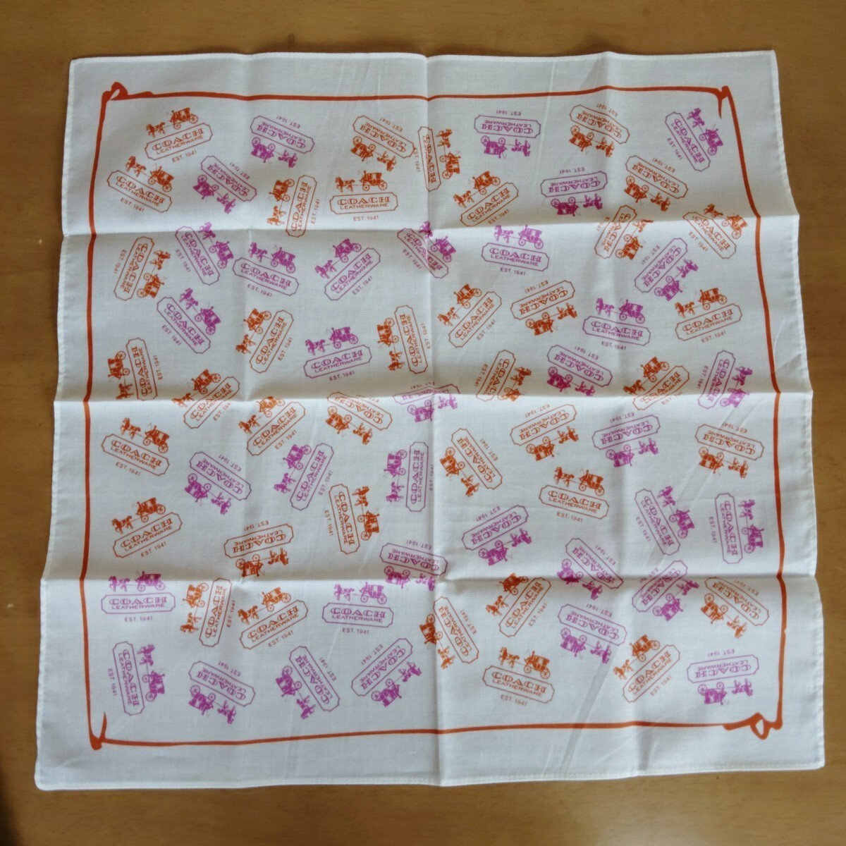 COACH コーチ ハンカチ バンダナ ホワイト ピンク オレンジ レディース