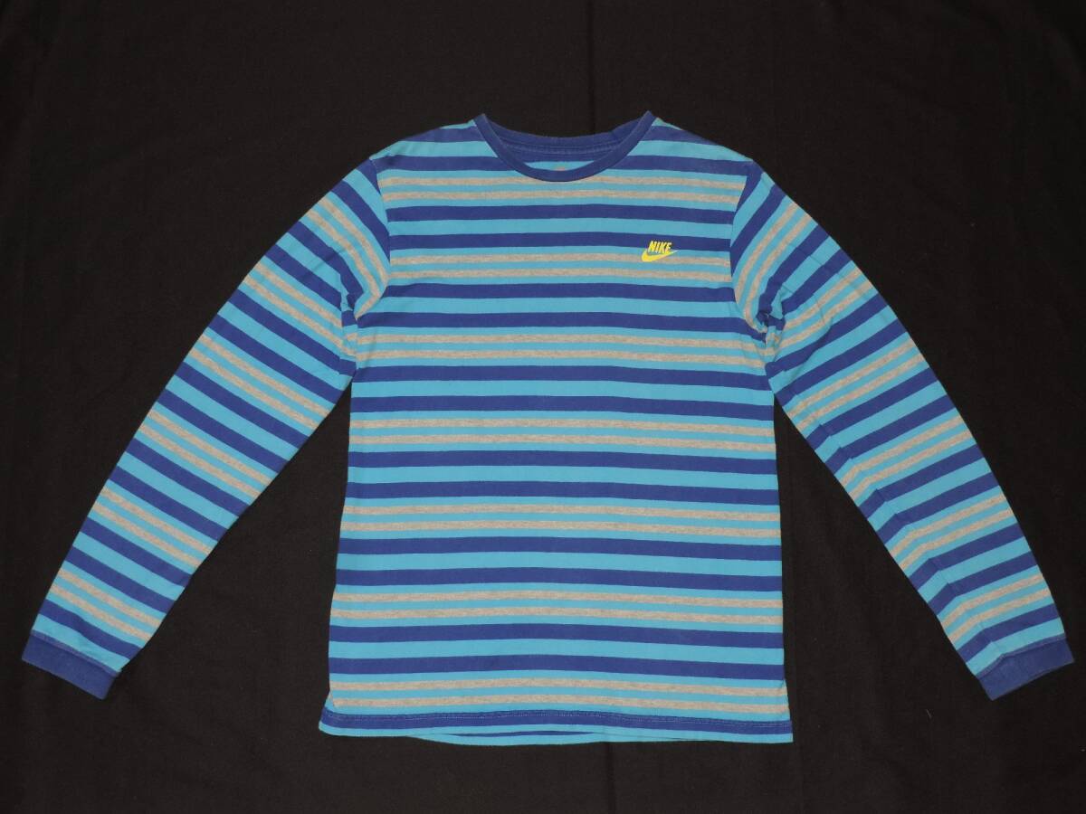 ☆NIKEのロゴプリントブルー系ボーダー長袖Tシャツ☆160センチ☆ナイキ☆
