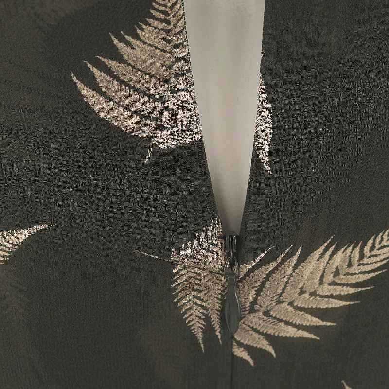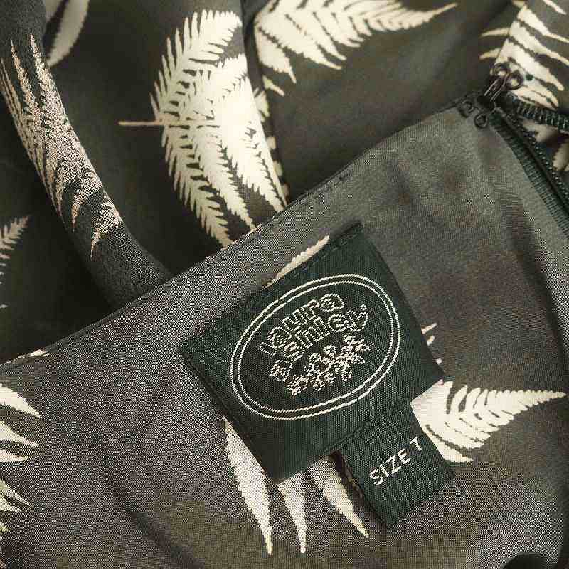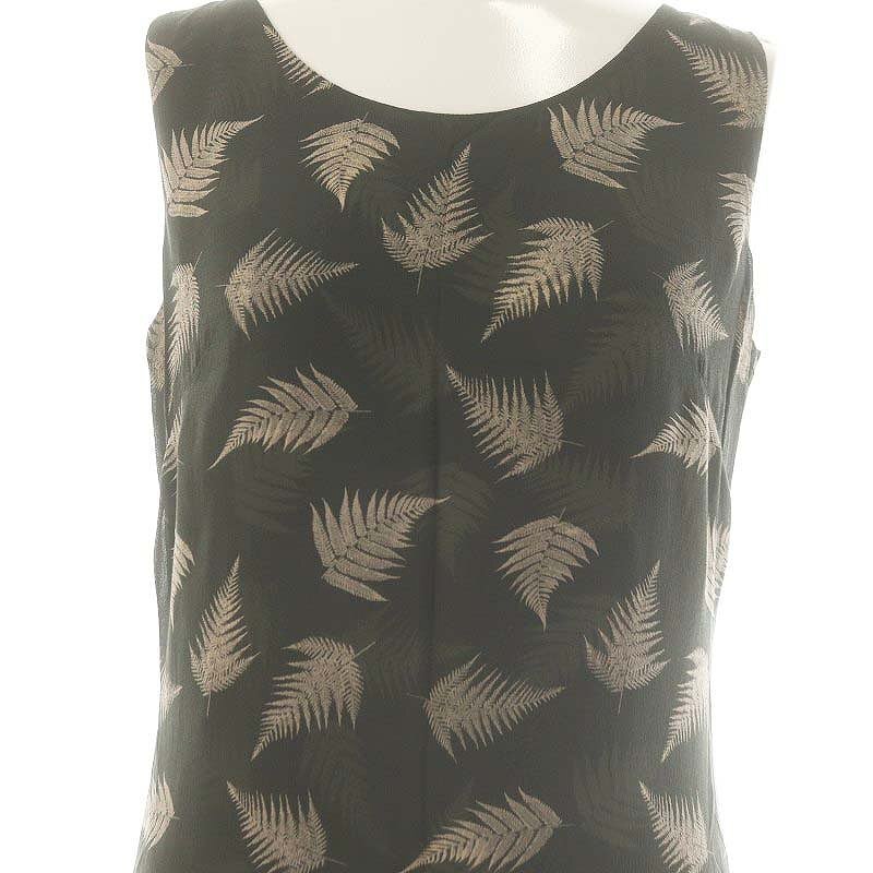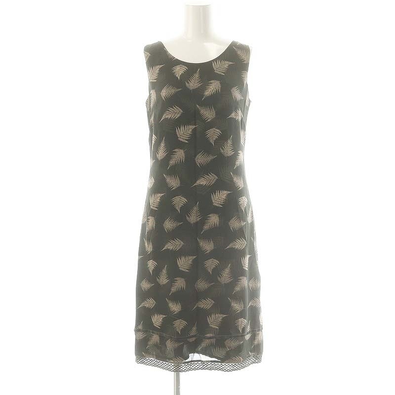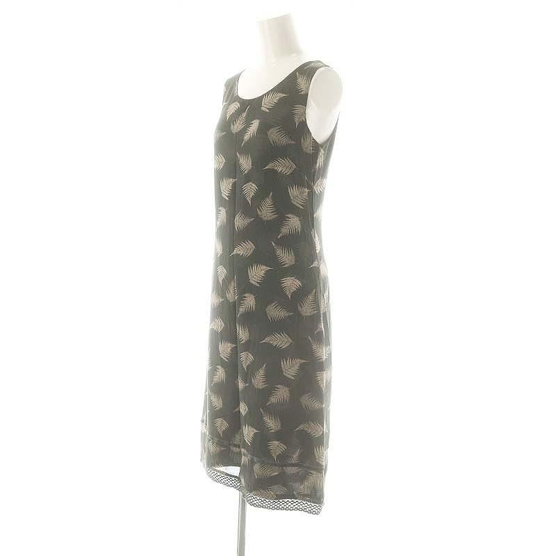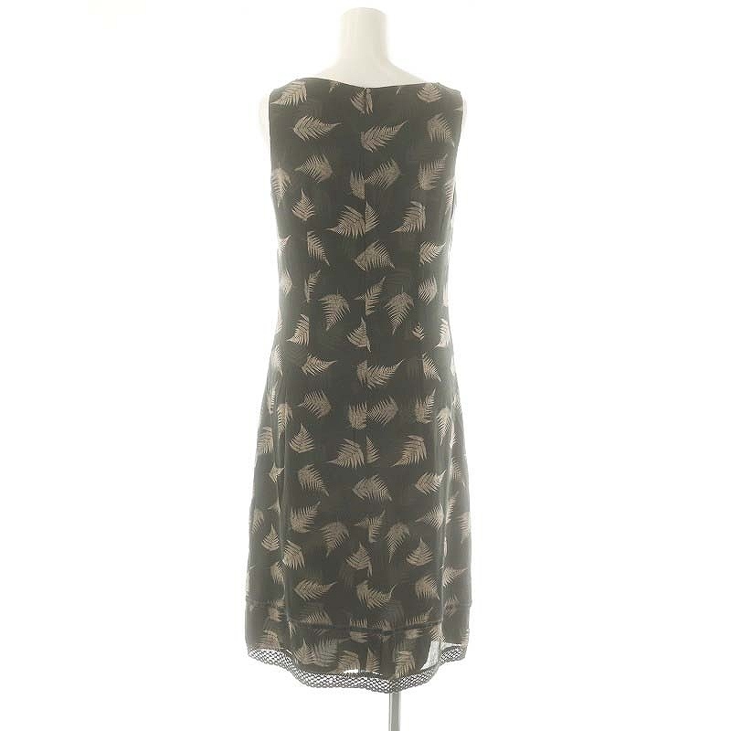 ローラアシュレイ LAURA ASHLEY シルク リーフ柄 ノースリーブワンピース 7 ダークグリーン ベージュ /ES ■OS レディース