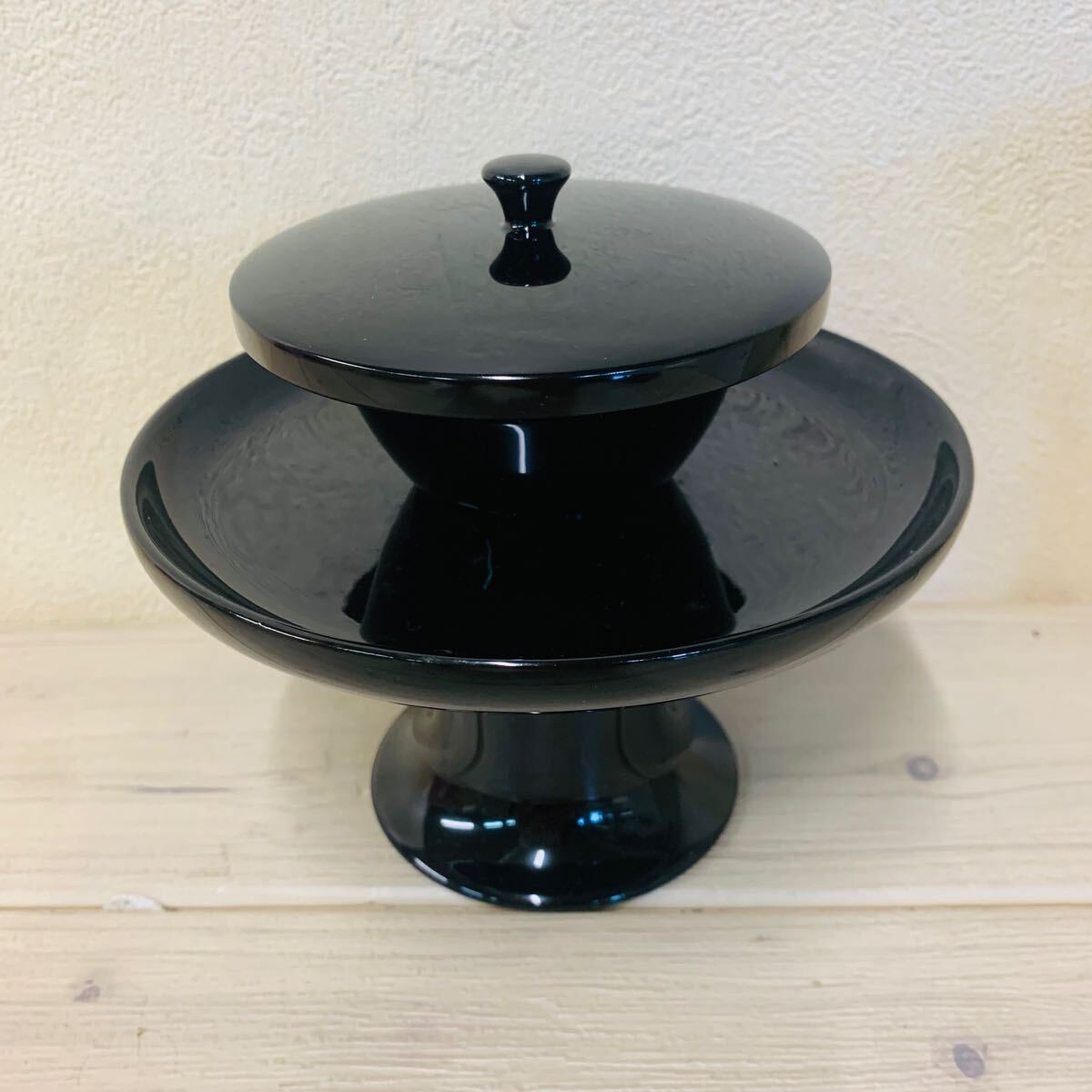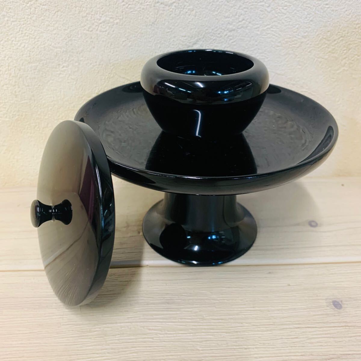 A132★未使用★仏具 木製 一本入 五.〇 茶台 黒塗
