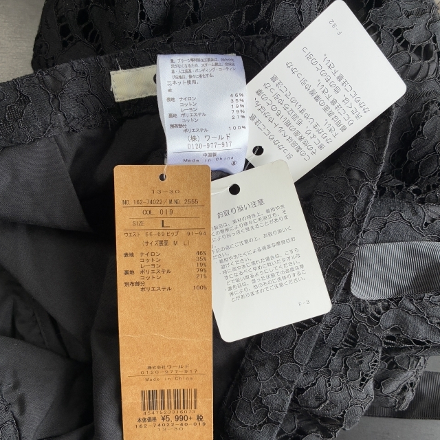 A373◇OZOC | オゾック レースロングスカート ブラック レディース Lサイズ 中古品