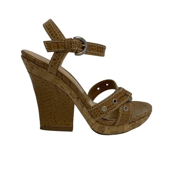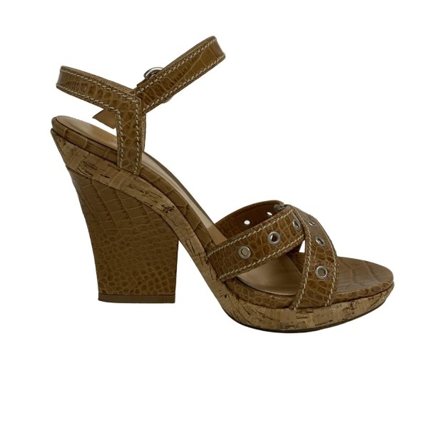 セルジオロッシ sergio rossi サンダル 37 - レザー ブラウン レディース 型押し加工 靴