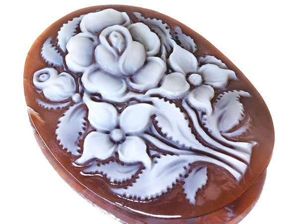 綺麗な花の彫刻が素敵な高級シェルカメオルースを激安価格で特別大放出致します!