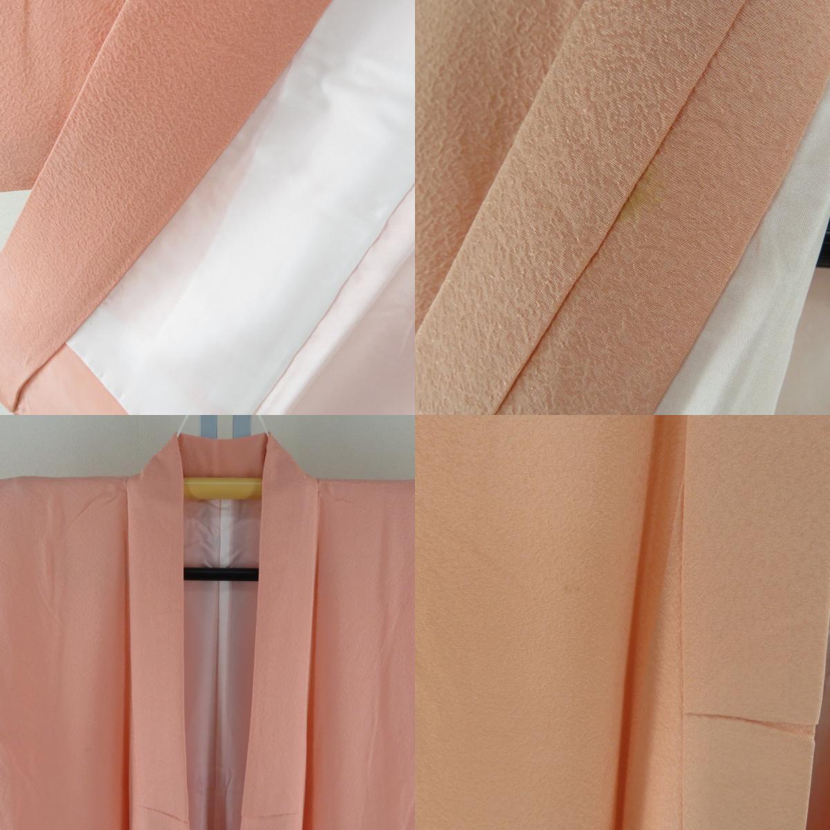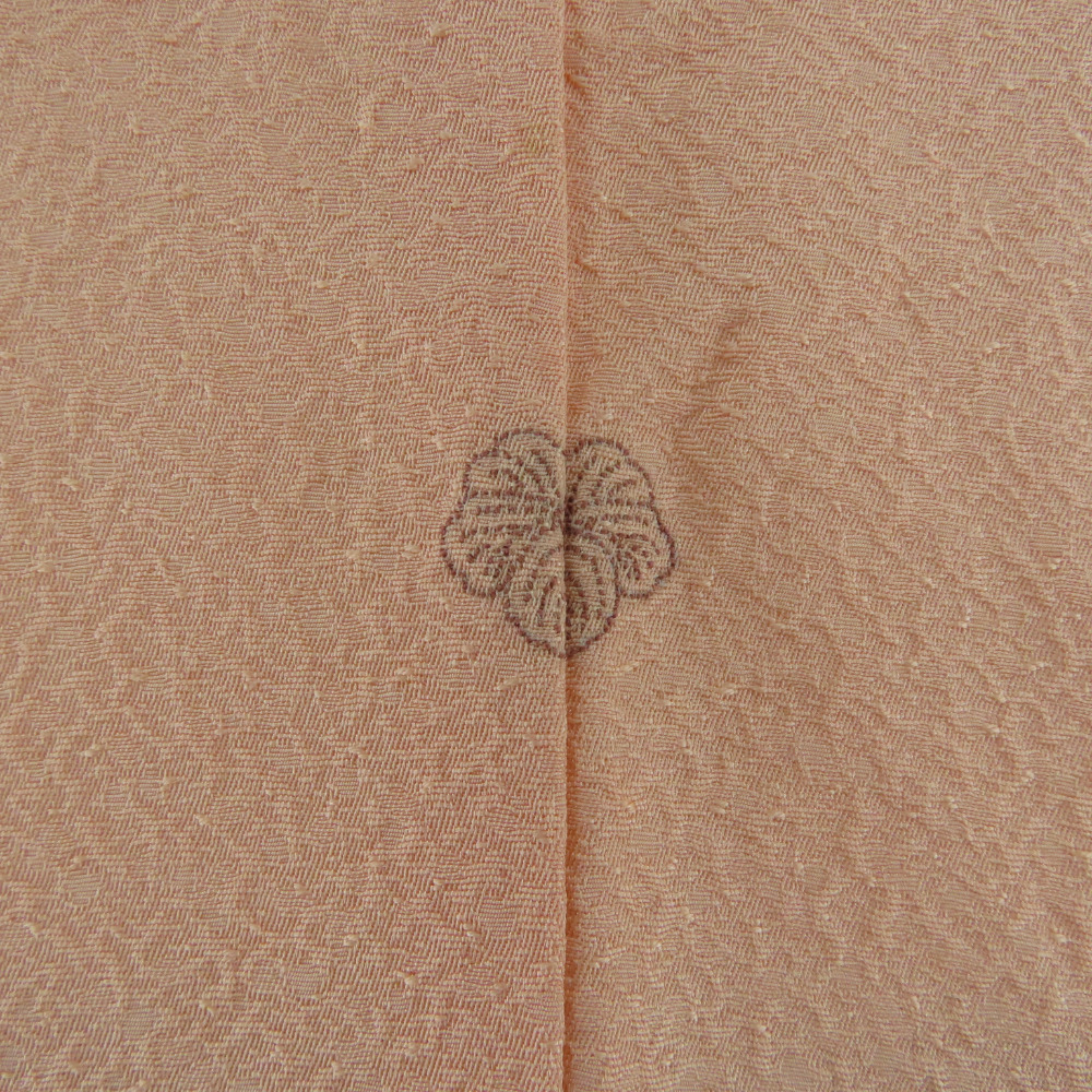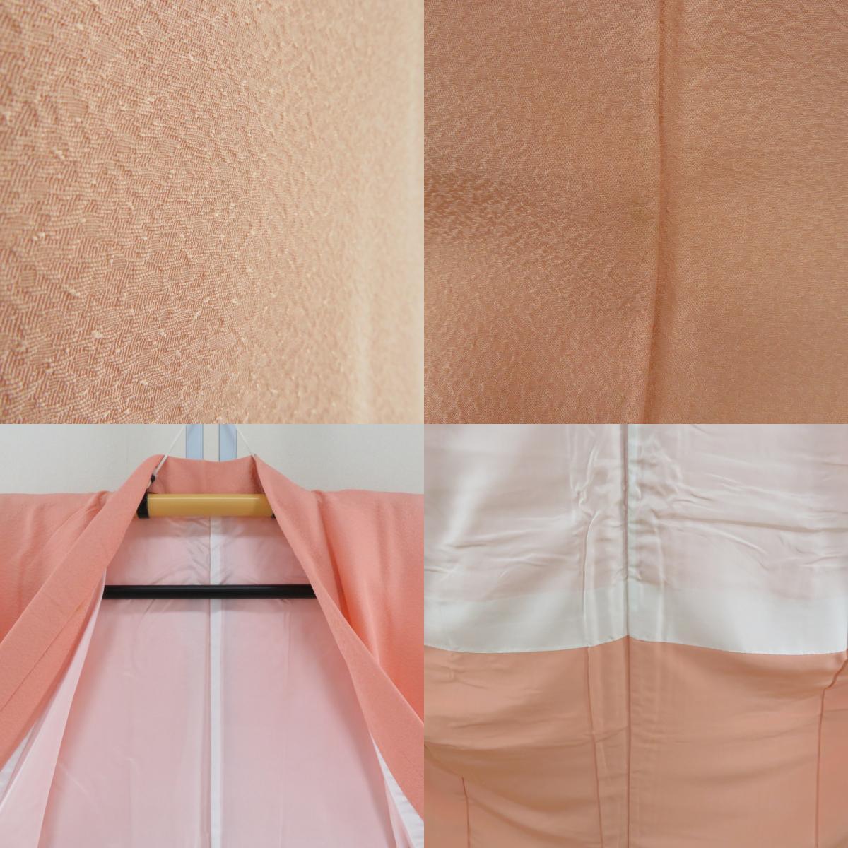 | 色無地 袷 サーモンピンク色 一つ紋 蔦紋 正絹 バチ衿 仕立て上がり着物 身丈160cm |
