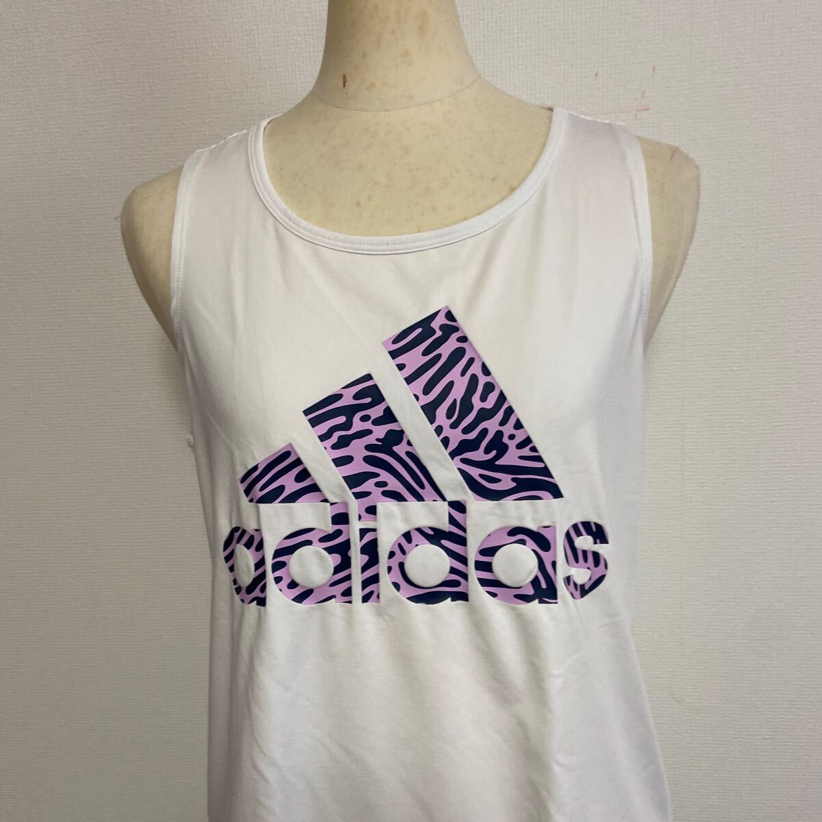 adidasアディダス★トレーニングウエア タンクトップ レディースLサイズ おしゃれウエア 白 ゼブラ