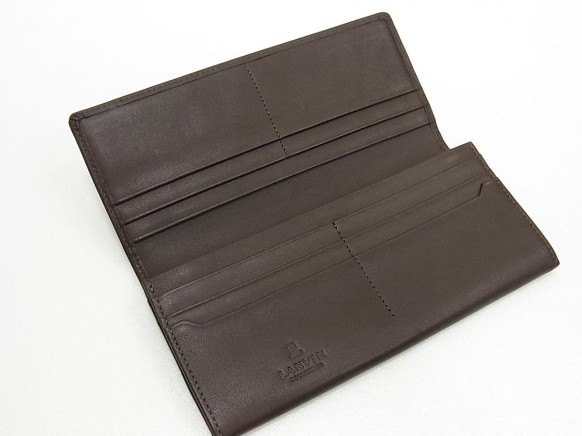 美品☆LANVIN ランバン レザーロングウォレット 長財布 レザー財布 メンズ 小銭入れ付き 本革