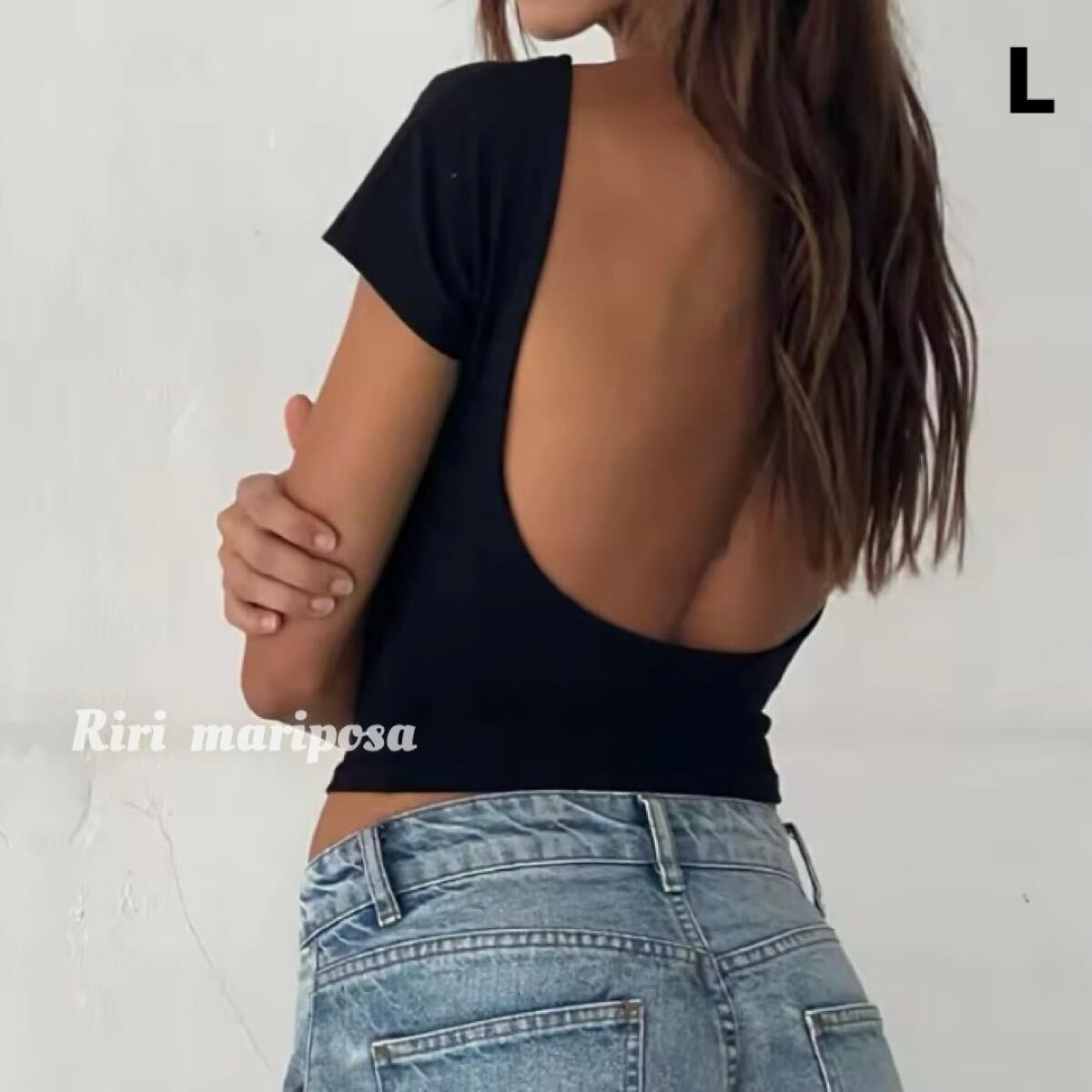 オープンバック半袖ショートトップス ヨガウェア ダンス Tシャツ