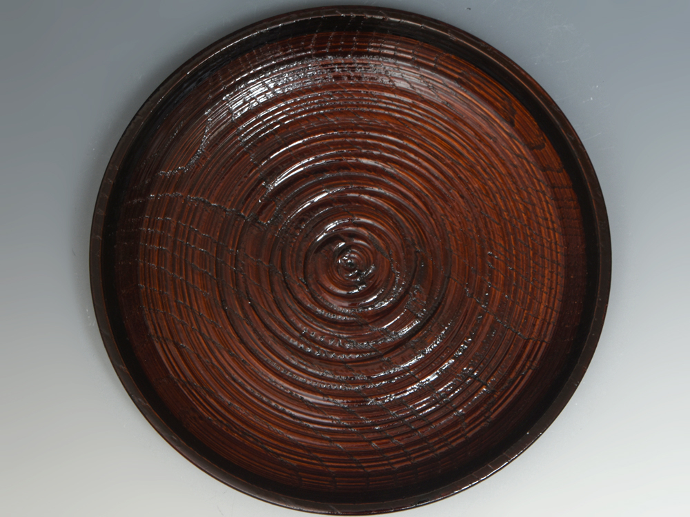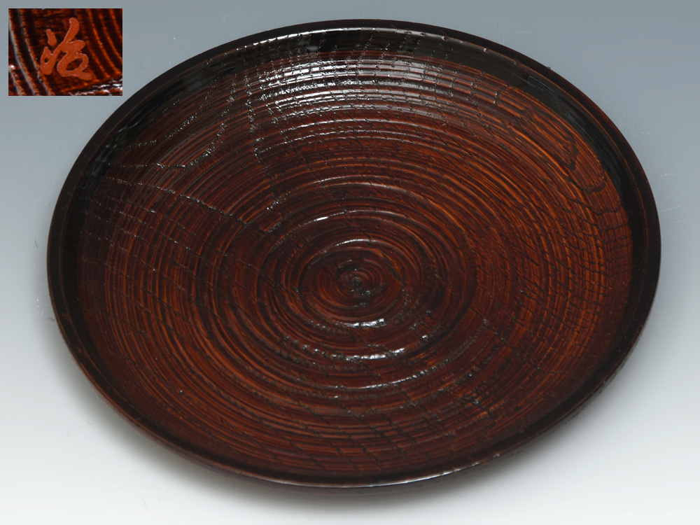 三代 村瀬治兵衛(造)欅盆 干菓子器 径18㎝ 干菓子盆 菓子盆 茶道具 天然木 木工芸 漆工芸 漆芸 |