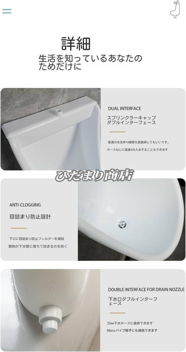 ▲アンチオーダーとアンチブロッキング設計:小便器の底には、水分出口の設計が拡大し、32mm下水道管はよりスムーズに排出されます。 それはアンチオーダーとアンチブロッキングであり、臭気が戻るのを防ぎ、バスルームを清潔で衛生的に保ちます。 異物が詰まるのを防ぐための組み込みアンチ詰まりフィルター。