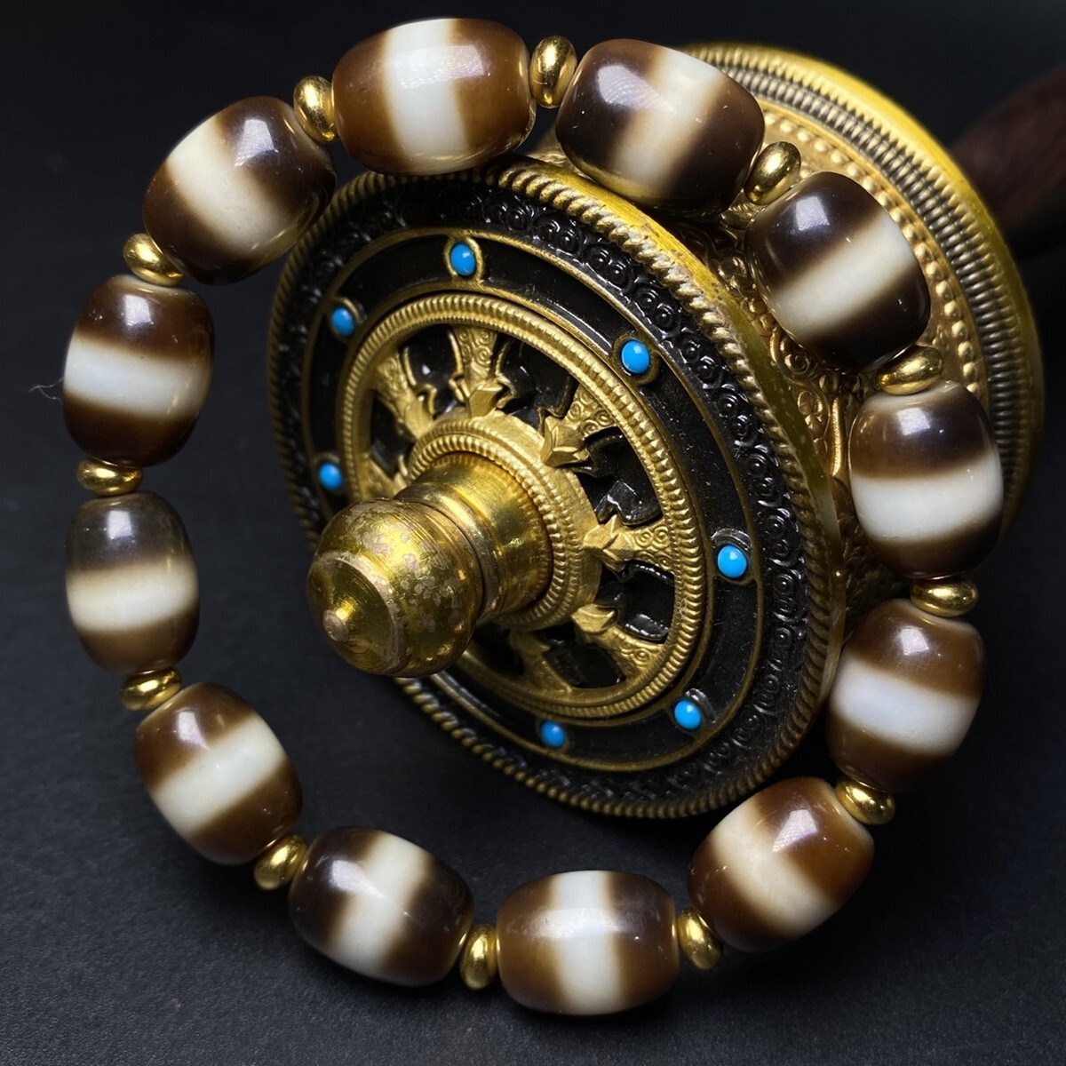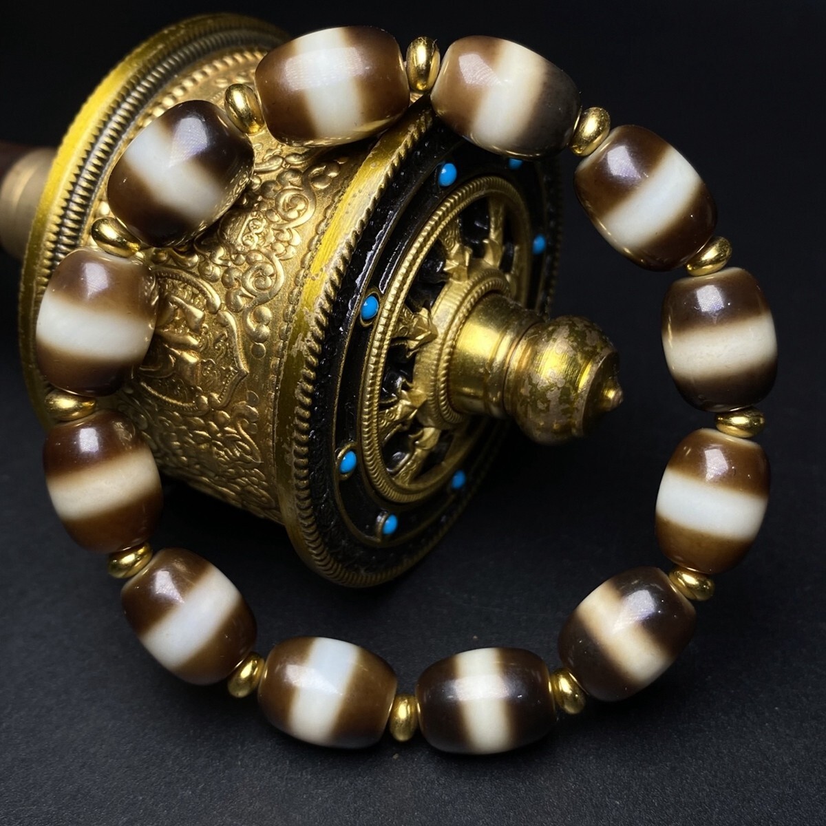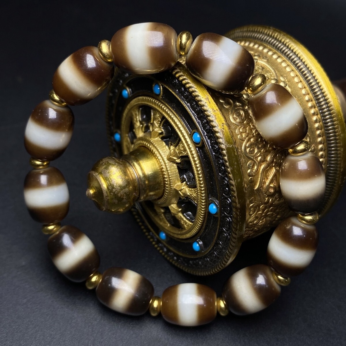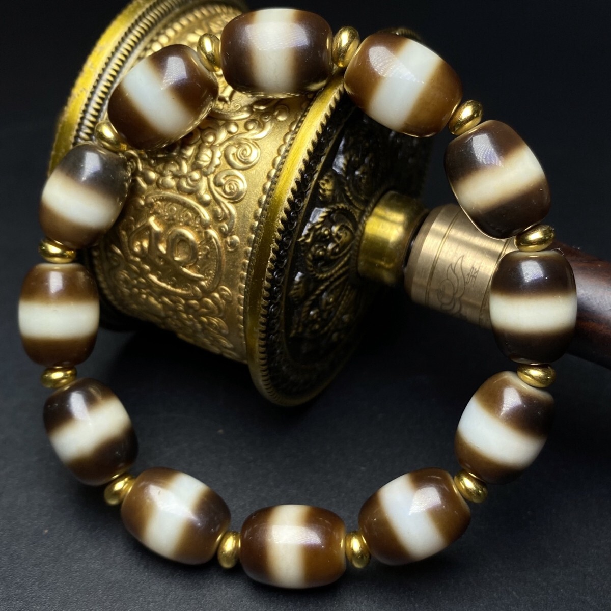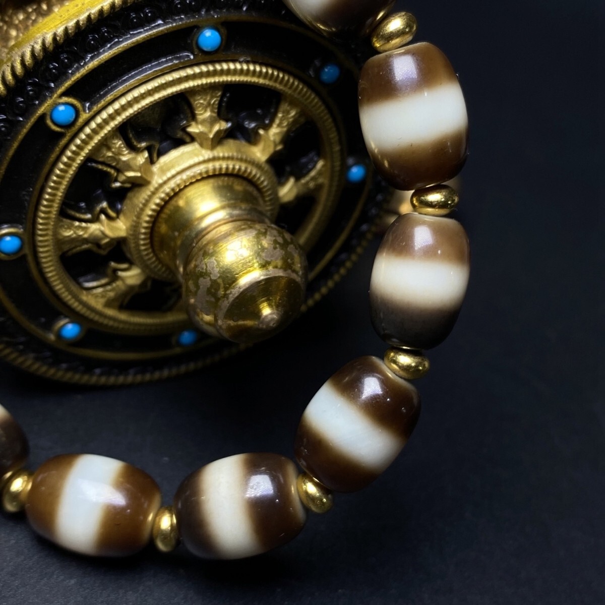 「時代物 藏區 瑪瑙彫り 一線薬師手鏈 ブレスレット」極細工 裝身具 賞物 中国古美術 旧蔵出