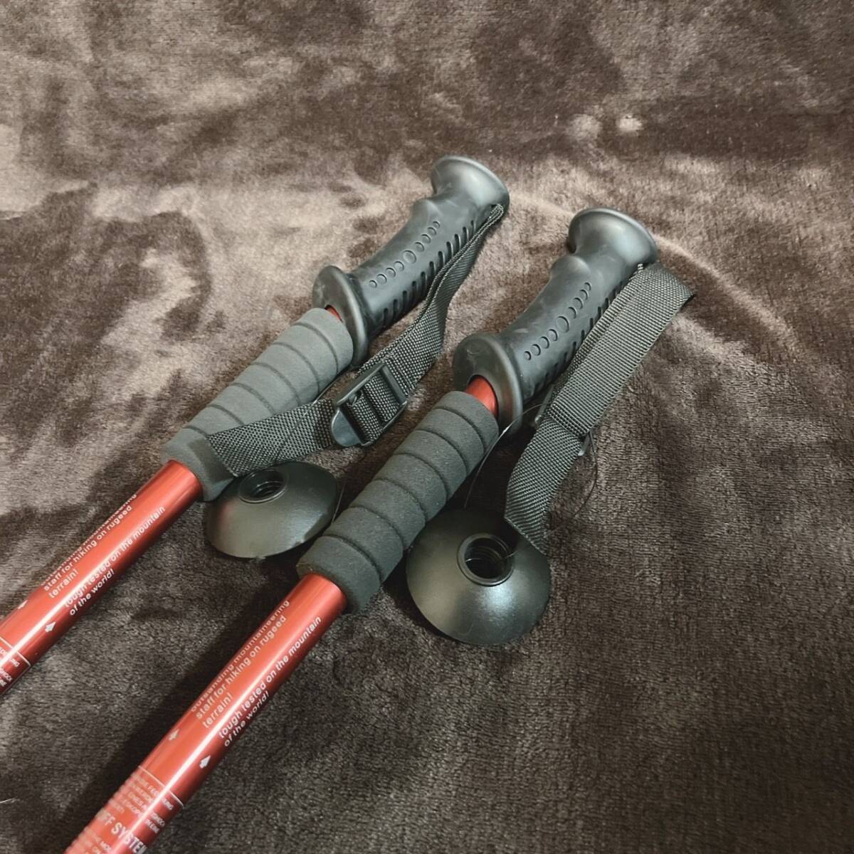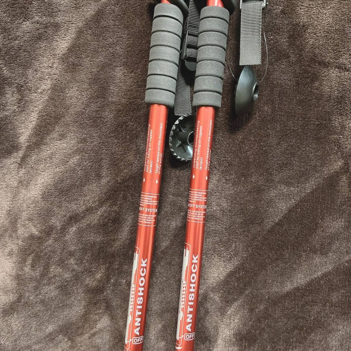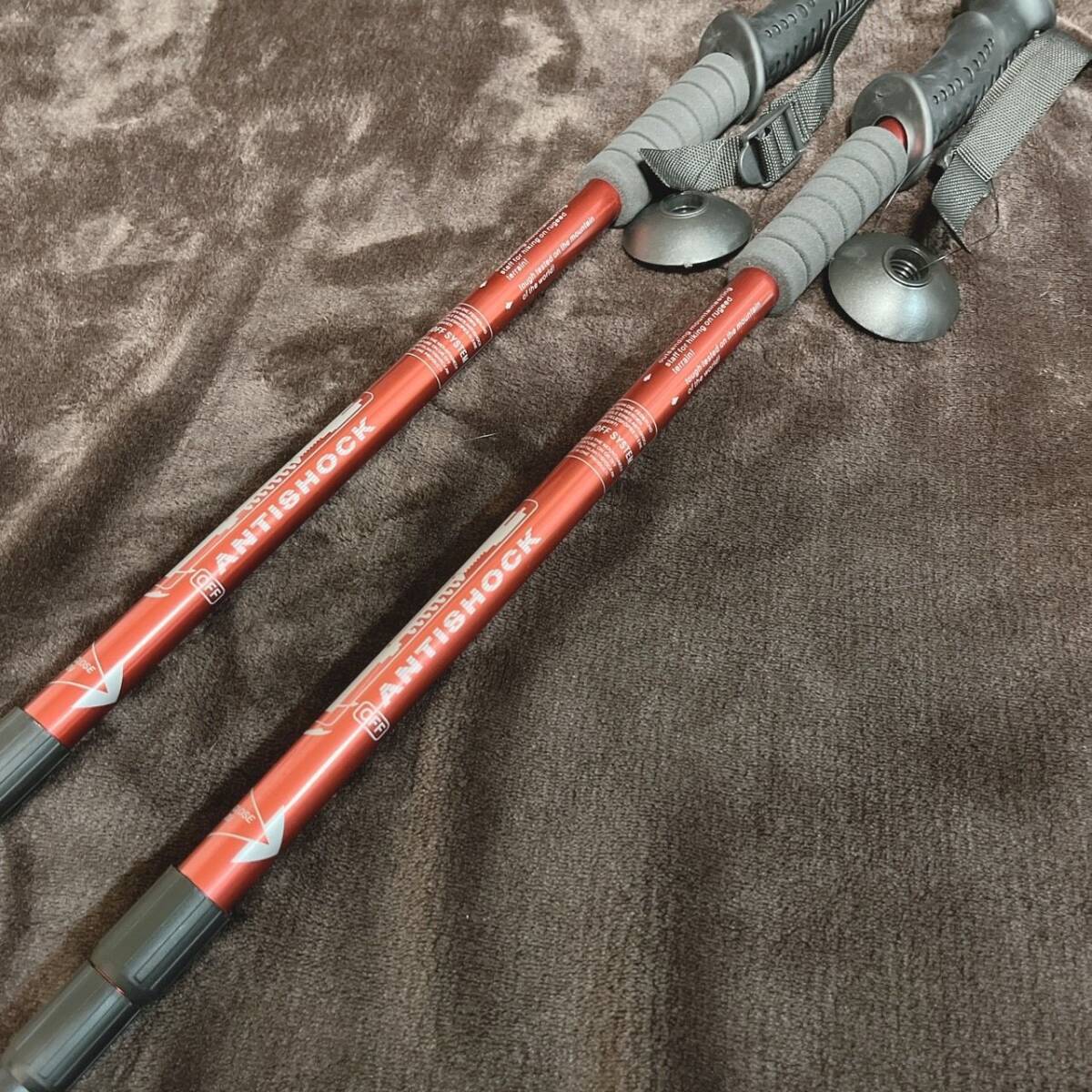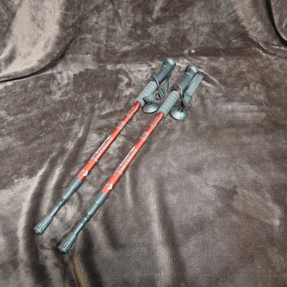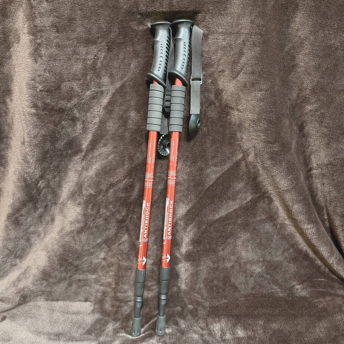 トレッキング ポール ストック 伸縮 2本セット 軽量 アルミ製 登山 健康 頑丈 軽い 登山杖 ウォーキング I型 初心者 110cm 赤 レッド N285