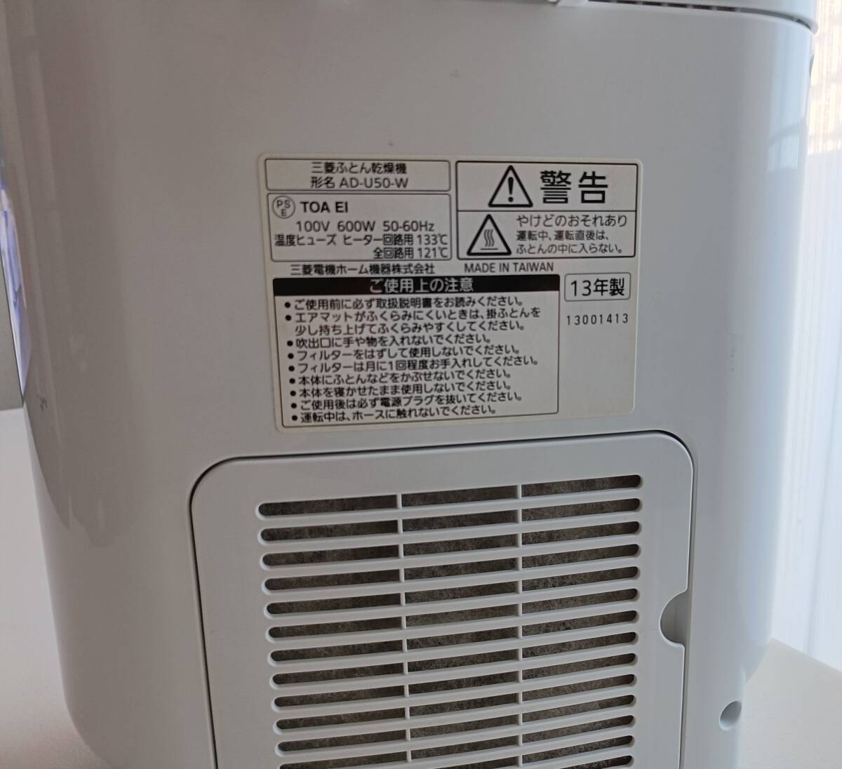 MITSUBISHI 三菱 ふとん乾燥機 AD-U50-W 動作確認Used品 送料元払い