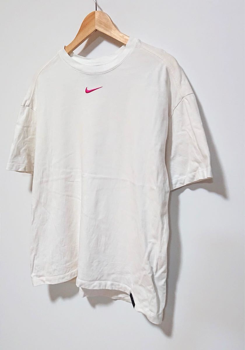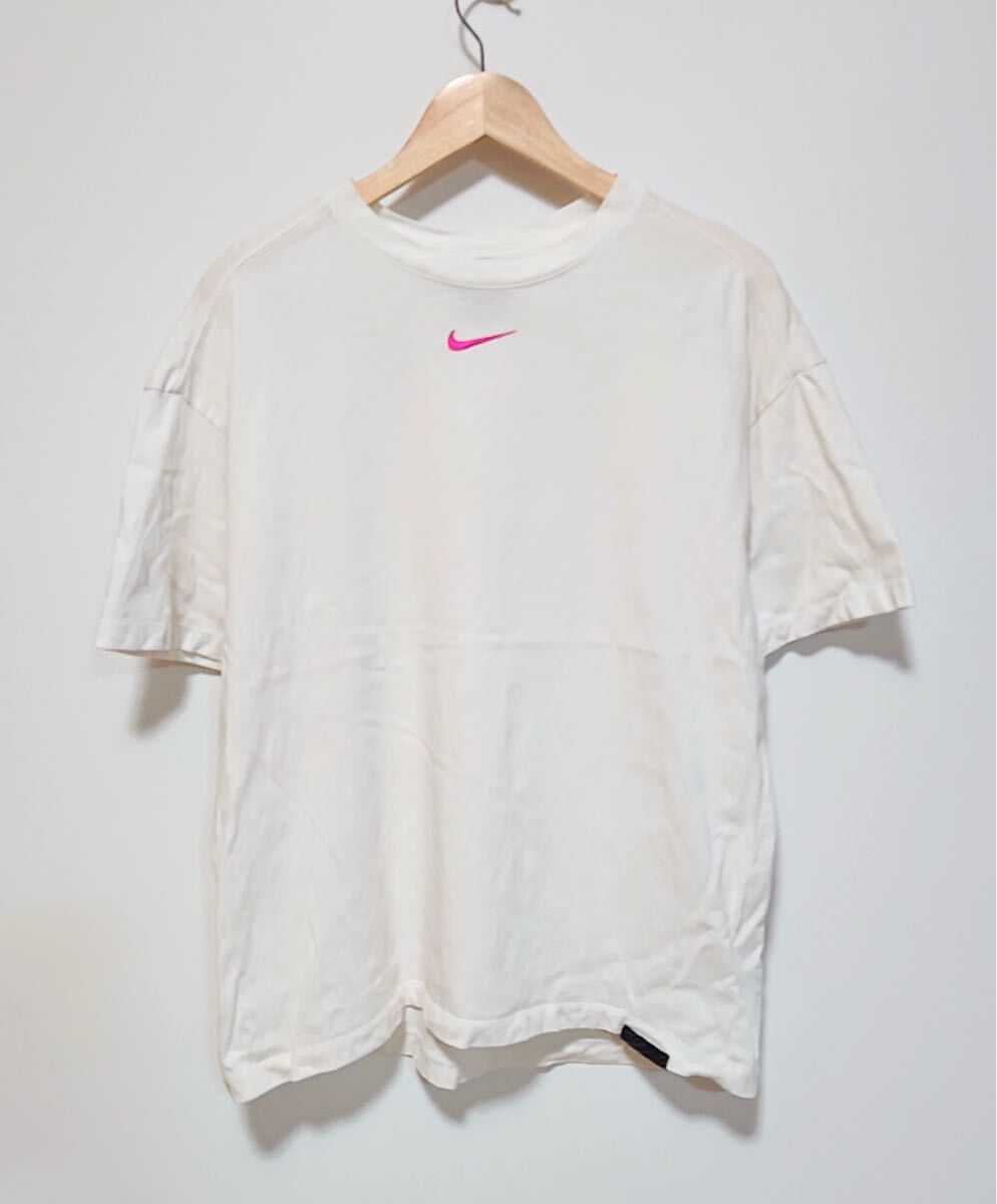 h3259gg NIKE ナイキ サイズM オーバーサイズTシャツ 半袖 ホワイト レディース スポーティ カジュアル ピンクロゴ刺繍 スポカジ 古着