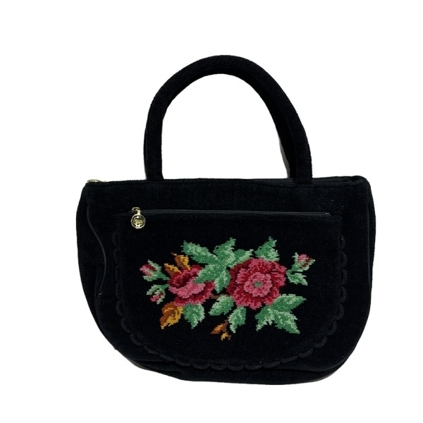 フェイラー FEILER ハンドバッグ - 黒×ピンク×マルチ フラワー(花) バッグ