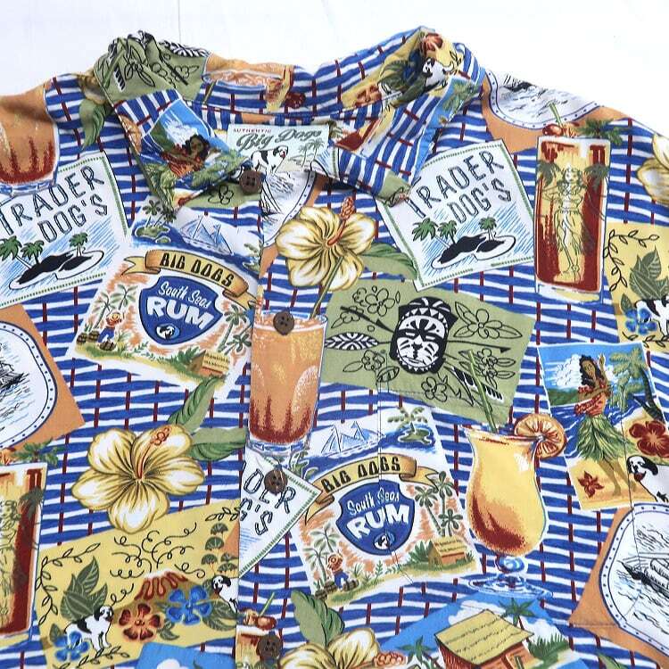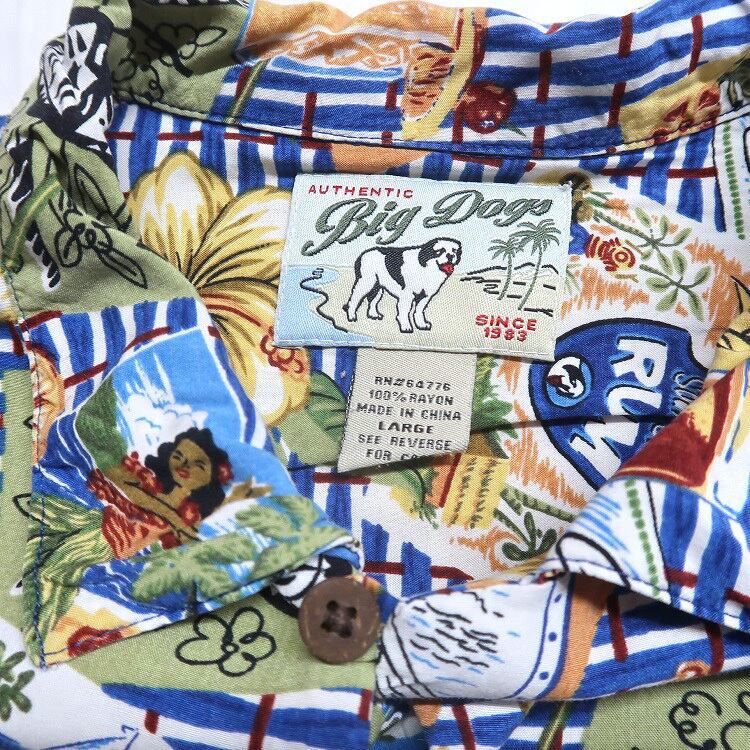 古着 Big Dogs 総柄 レーヨン 半袖シャツ レーヨンシャツ 表記:L gd405819n w50512