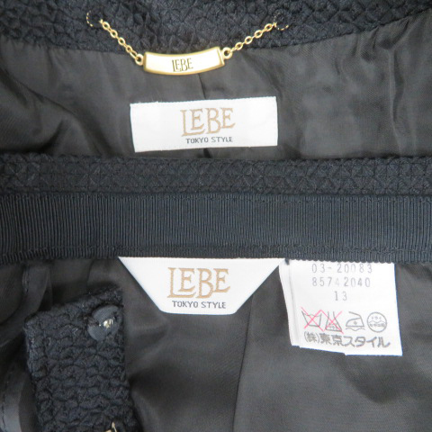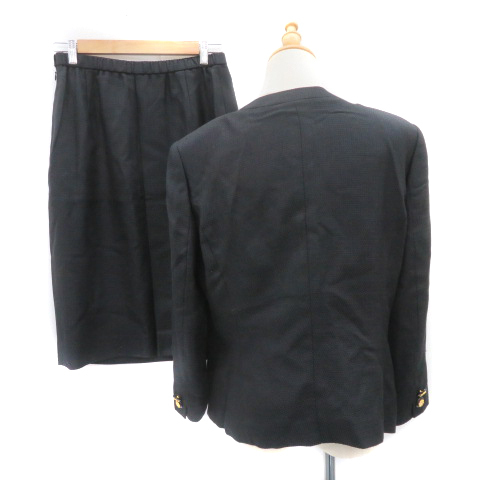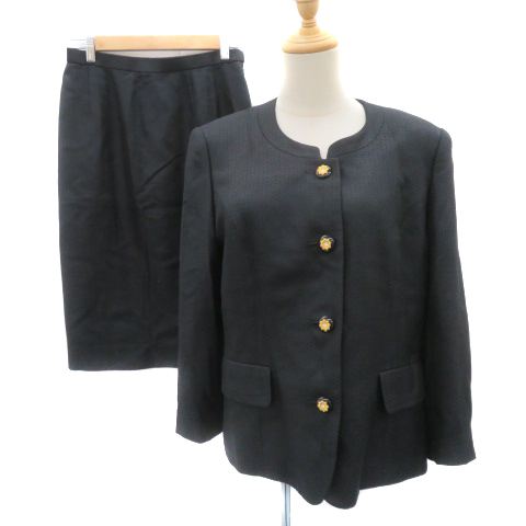 ラベ LEBE フォーマル セットアップ 上下 ノーカラージャケット シングルボタン 総裏地 タイトスカート 総柄 シルク 13 黒 レディース