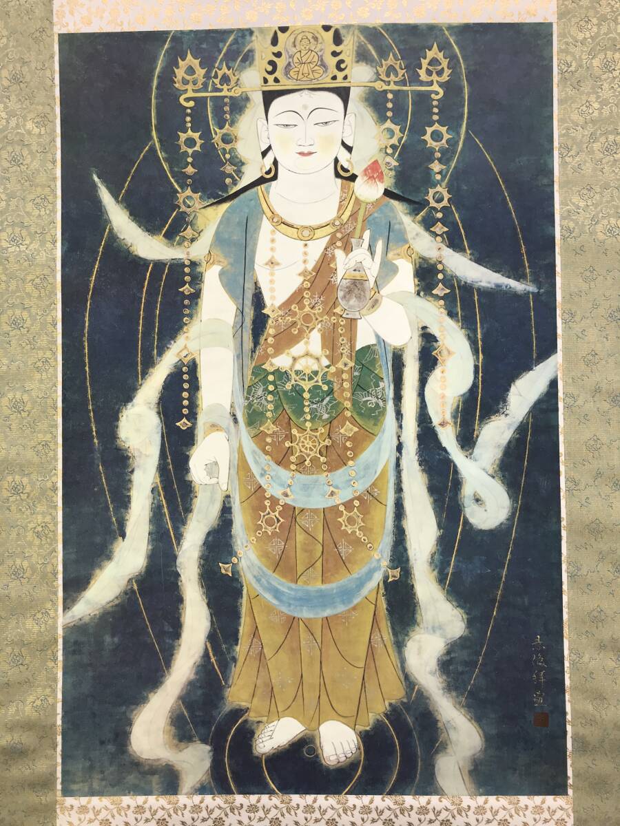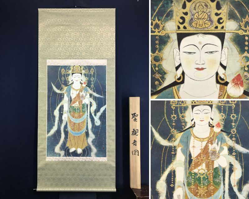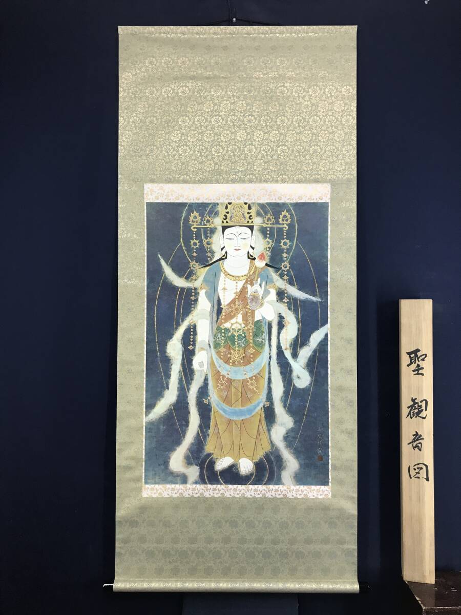 複製/鬼原素俊/聖観音図/仏掛軸/人物図/工芸品/掛軸☆宝船☆AJ-393