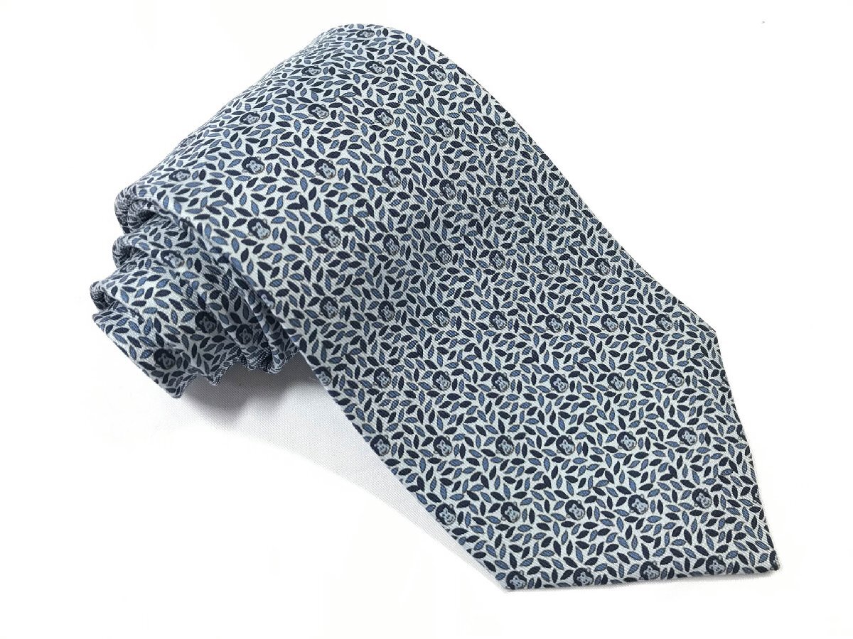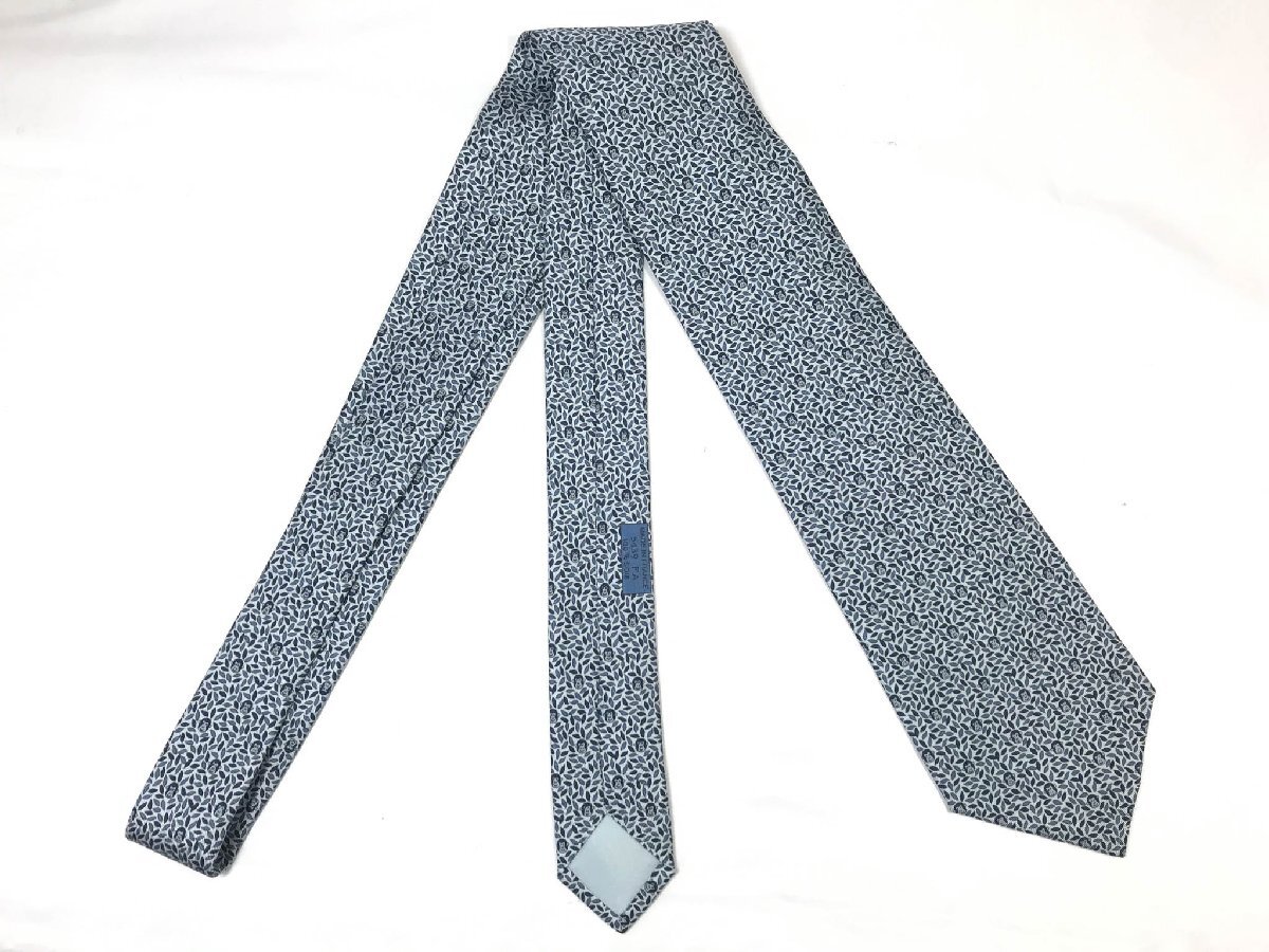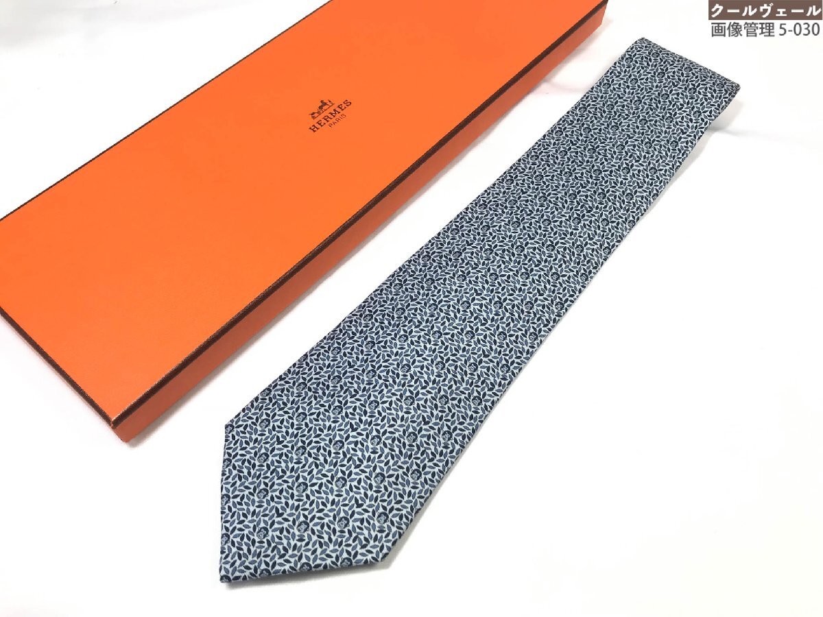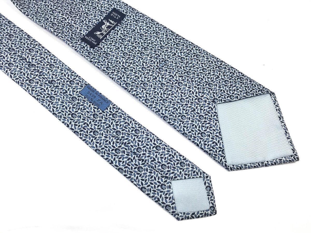 HH未使用 【エルメス HERMES】 ゴリラ×リーフ柄プリント♪ シルク ネクタイ (メンズ) ネイビー系 フランス製 ◯10ME7571◯