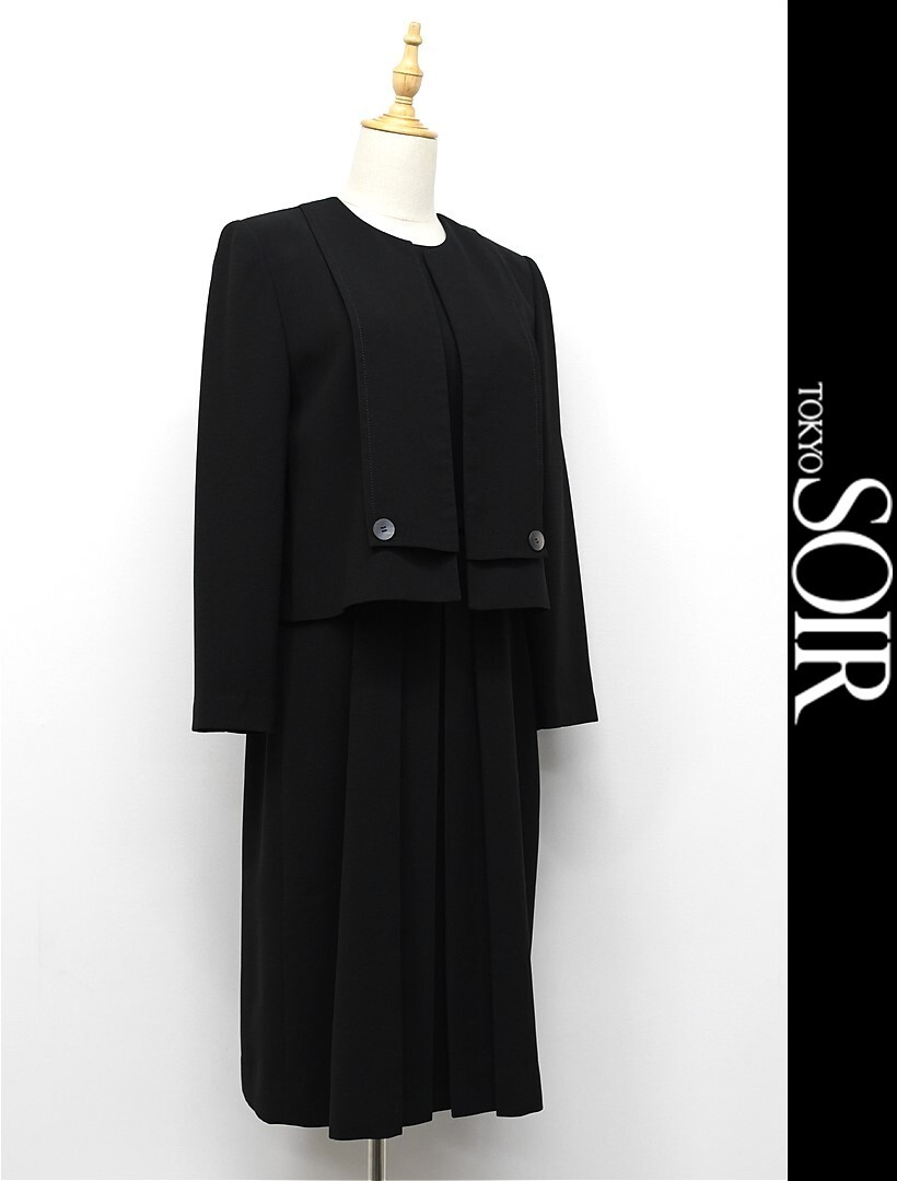 F478/東京ソワール TOKYO SOIR セットアップ ワンピーススーツ アンサンブル ノーカラージャケット ひざ丈 ミモレ丈 13 XL 冠婚葬祭 通年