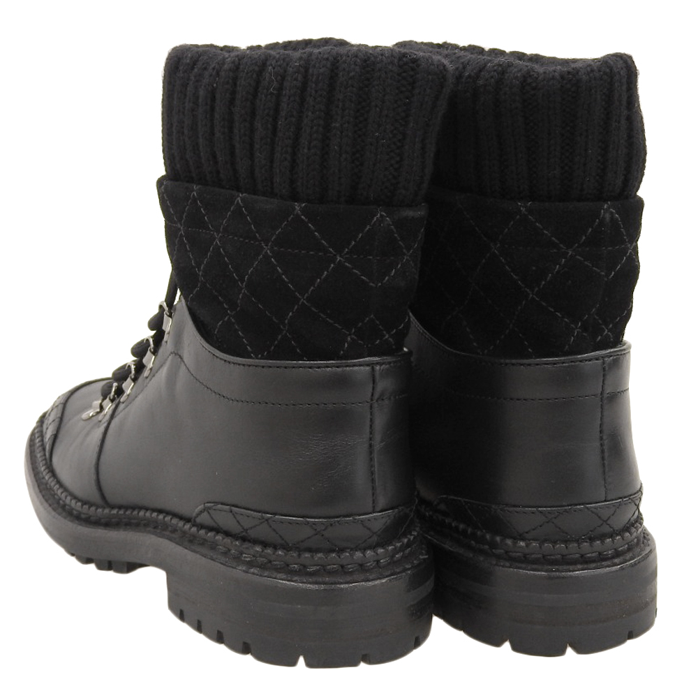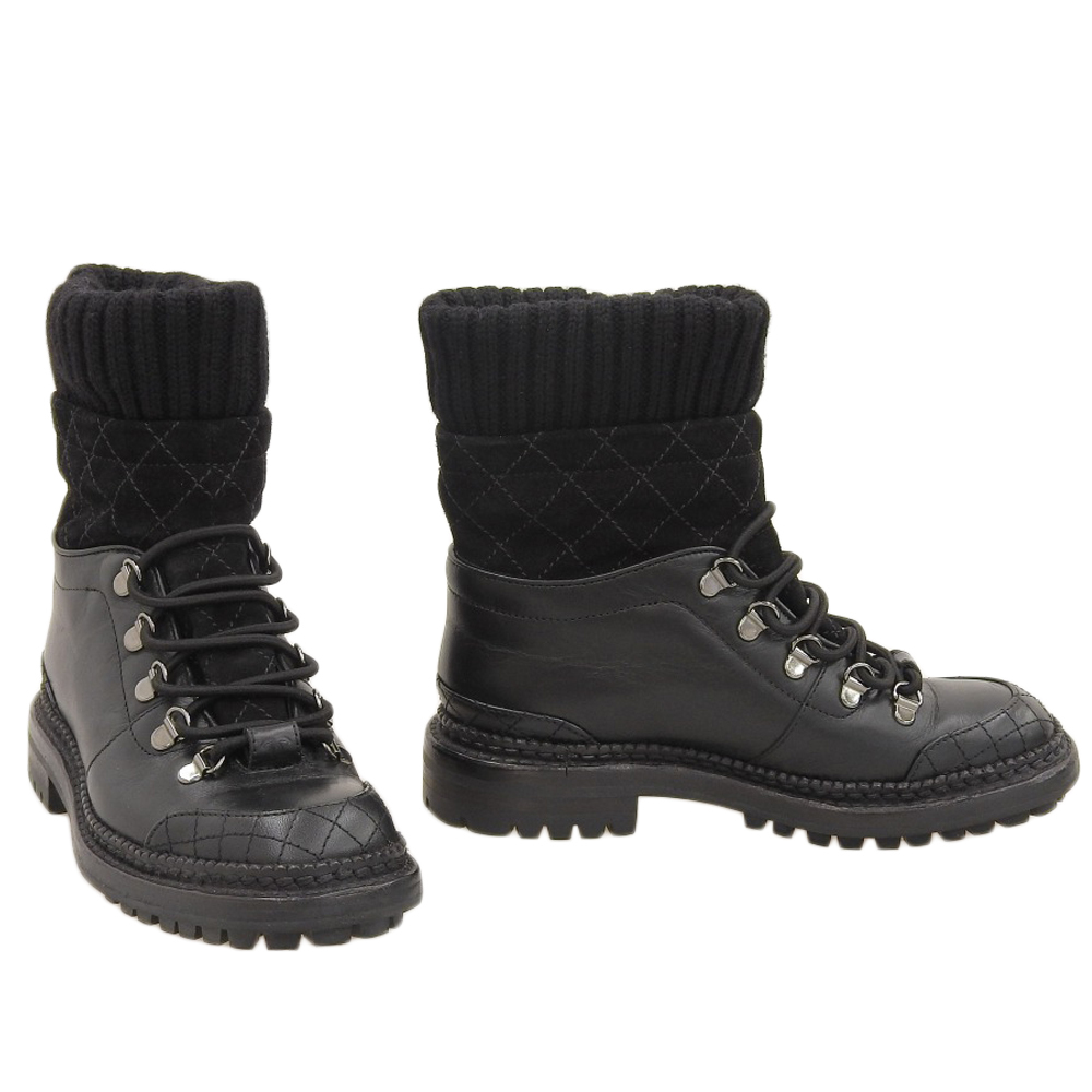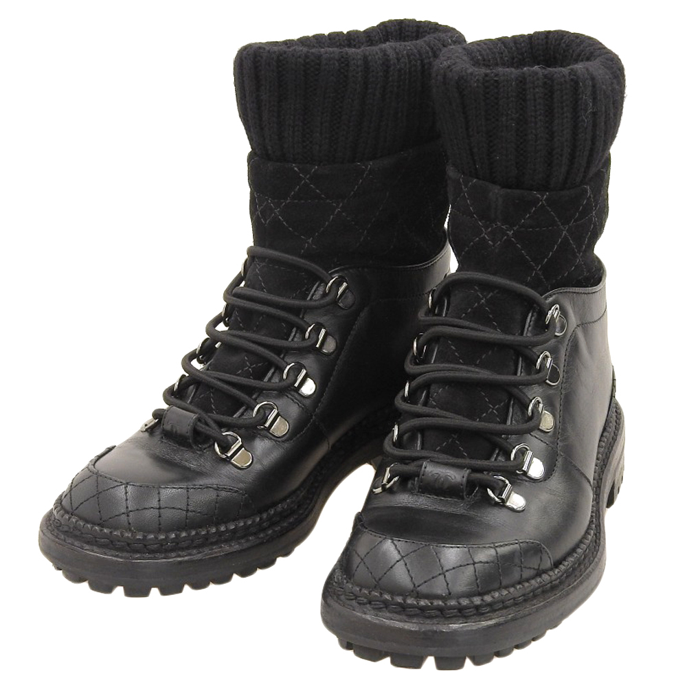 | 箱付超美品 シャネル 2017年 ココマーク スエード マトラッセ トリム レザー ニットソック アンクル ブーツ シューズ 35.5 22-22.5cm |