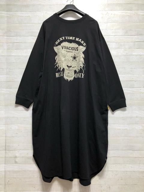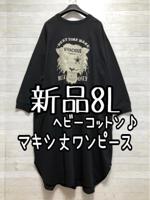 新品☆8L♪黒プリントおしゃれカッコイイ綿100%ワンピース♪☆D909