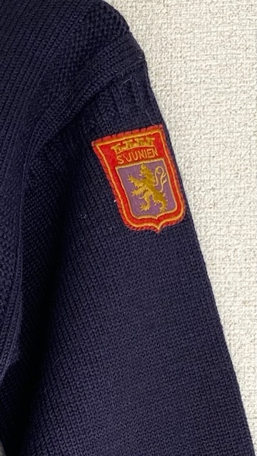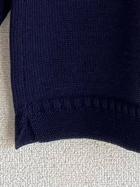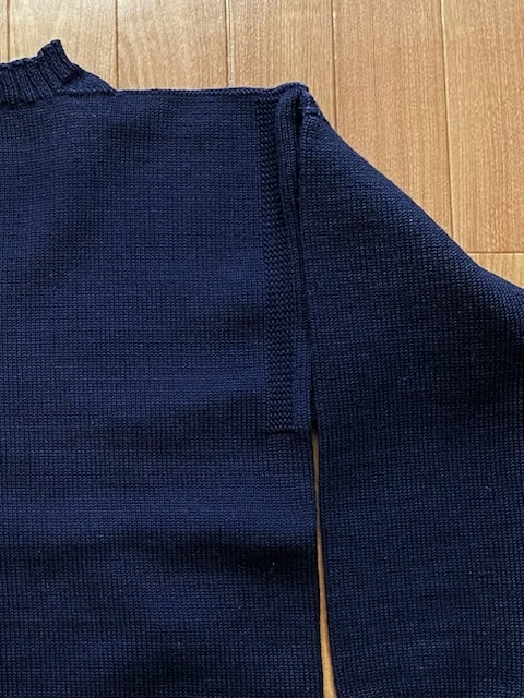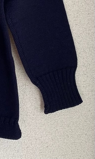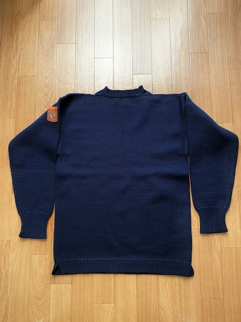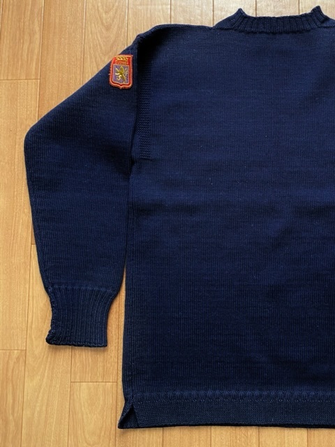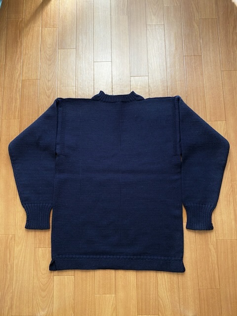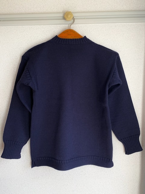 暗い海の上でも スムーズに 着用出来るように前後の区別が無い形状は ガンジーセーターの特徴です。