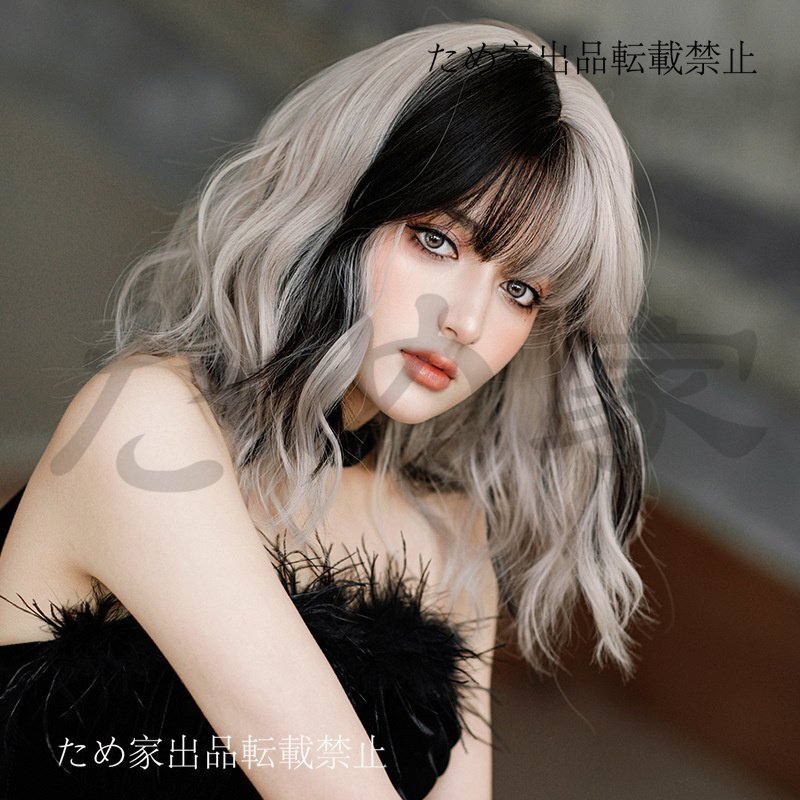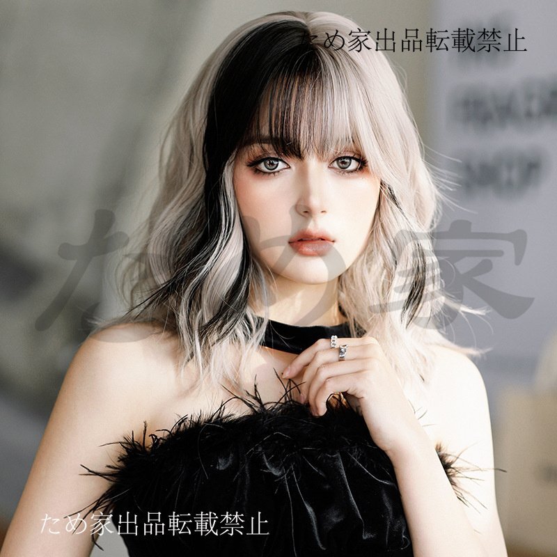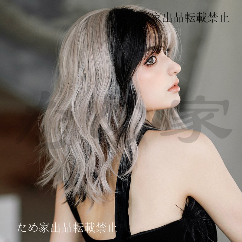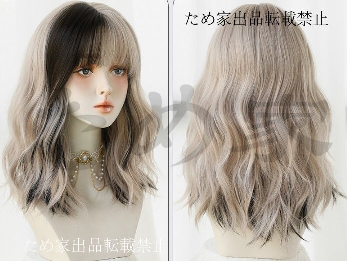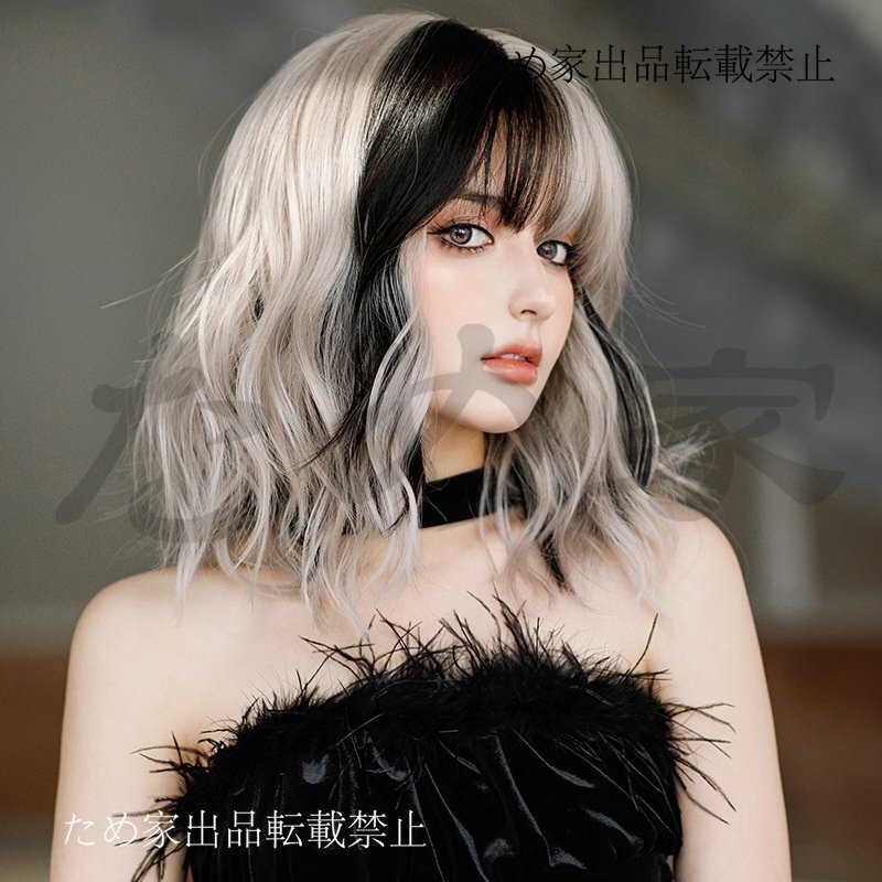 新品人毛 ショートカール 銀灰ピンク ウィッグ つむじ部分手植え 自然に見えますフルウィッグ