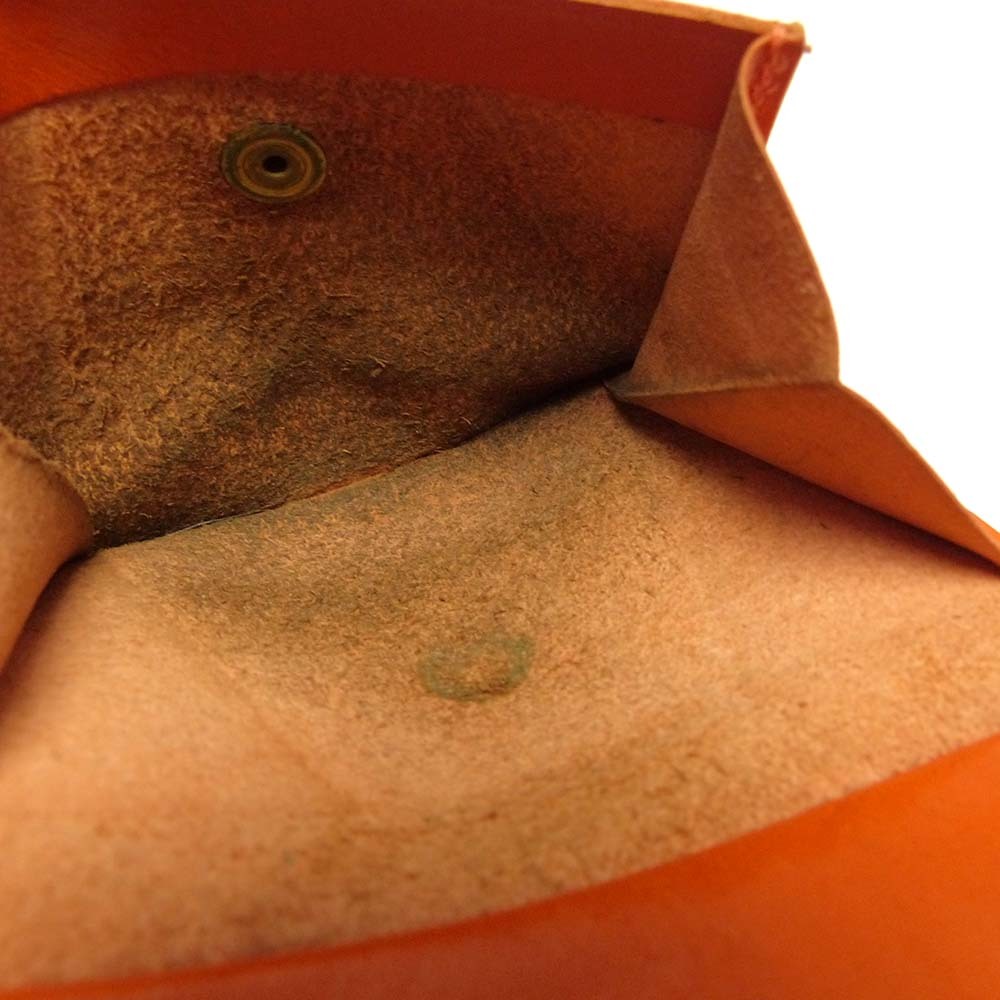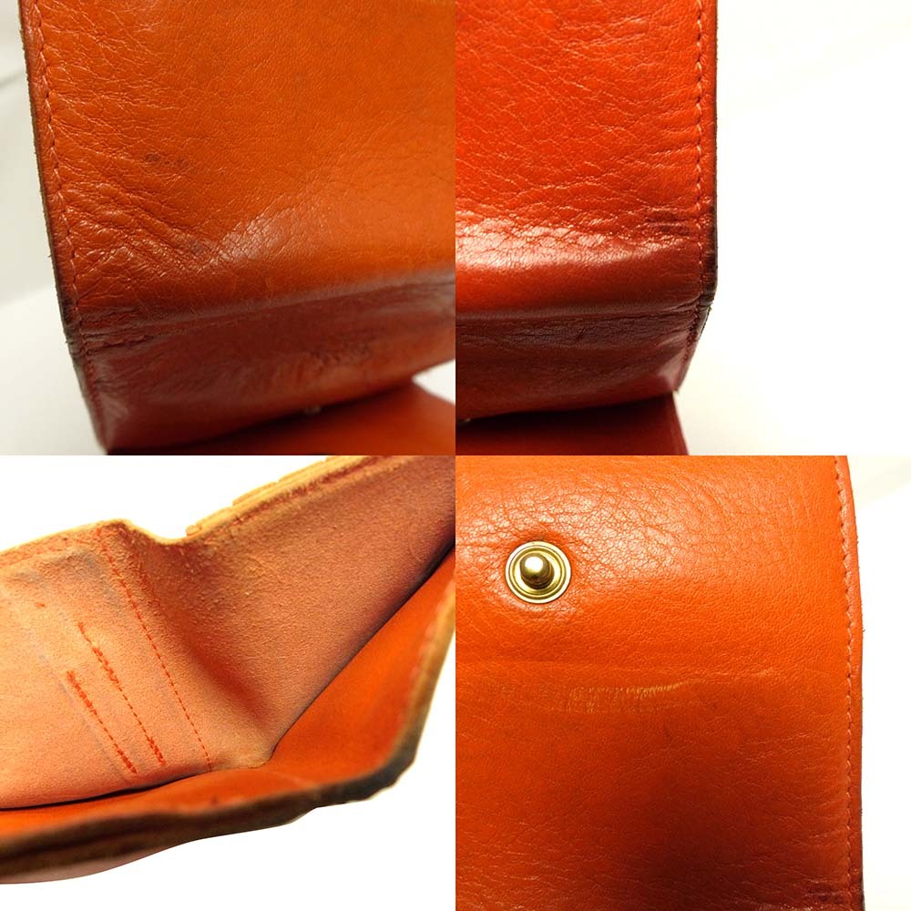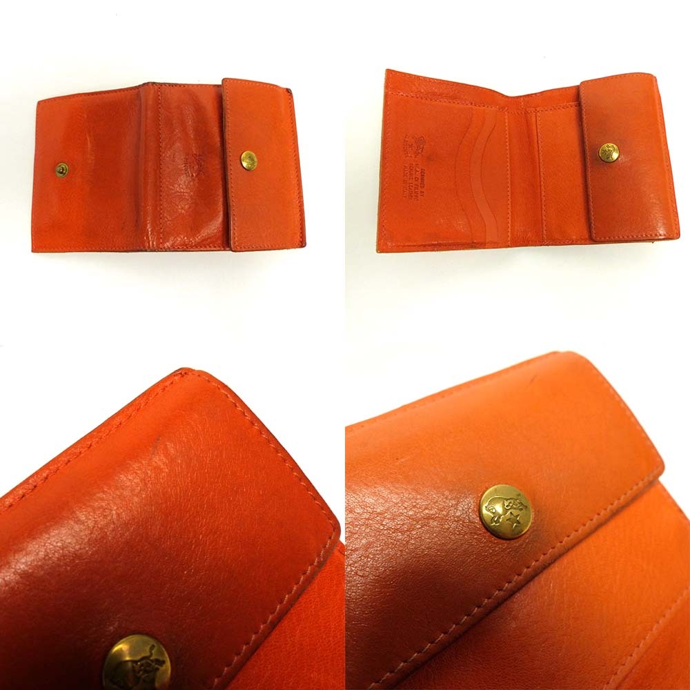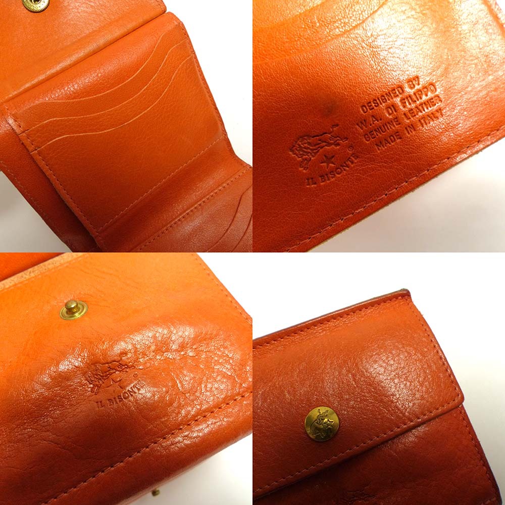 色はオレンジ・素材はレザー・Made in Italy・収納は9ケ所(スナップボタン開閉 ・札入れ×1 ・小銭入れ×1 ・カードポケット×6 ・フリーポケット1)。イタリア製 IL BISONTE / イルビゾンテ Wスクエアフラップウォレット/ 2つ折り財布