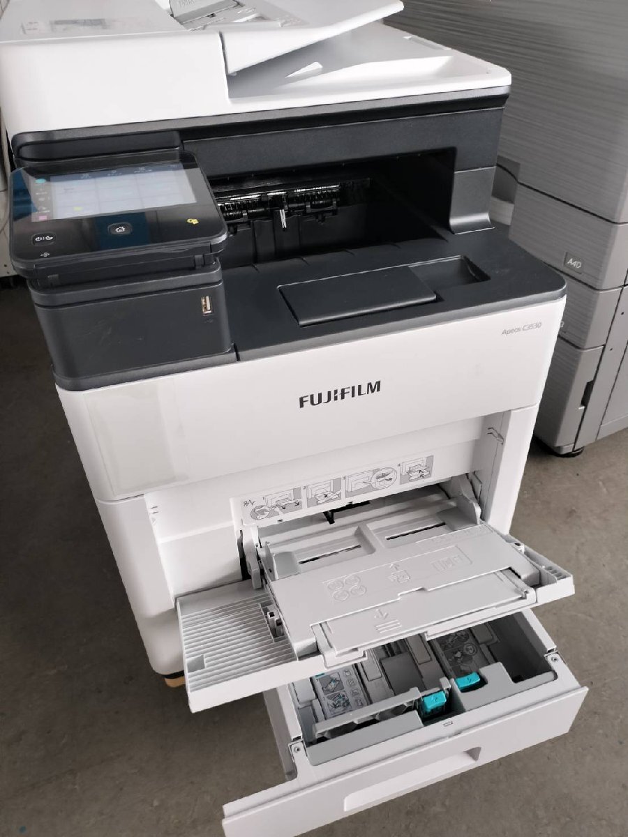 | 現状 | 用紙サイズA4、レター、リーガル 連続複写速度 カラー/モノクロ:35枚/分(A4) 連続複写枚数 999枚 大きさ 幅420×奥行500 ×高さ565 mm 約34kg ・コピー、ファックス、プリンター、スキャン機能のテストを行いました。 特に問題なく動作良好です。 ・純正トナー残量は写真にてご参照ください。そのままお付けいたします。カラーは満タンですが、黒はそろそろご交換が必要となります。 ・外観には若干の擦れや汚れあります。 |